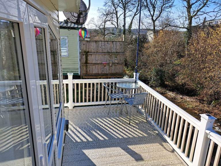 Perfectly prepped for all-season comfort, this model features full double glazing and double doors straight onto the upvc decking over looking the stream with fully stocked garden . Free standing furniture included in the sale baxi boiler central heating, ensuring a warm welcome no matter the weather.