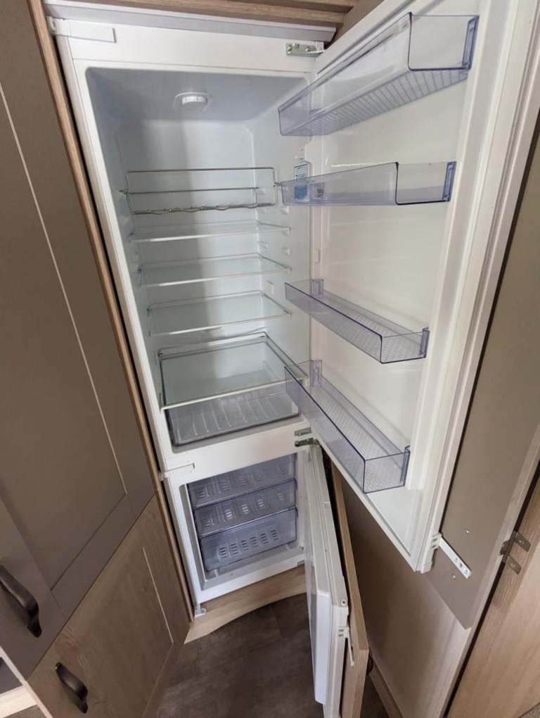 The spacious kitchen in the ABI Beaumont features stunning wooden cabinets and stone-effect contrast tops. This model has an integrated oven and grill, extractor hood, fridge/freezer, washing machine and dish-washer as standard.