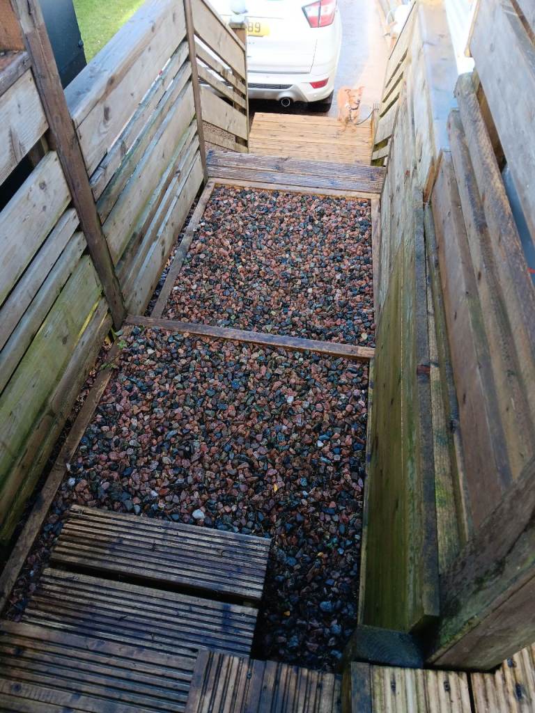 Safe decking area above caravan.