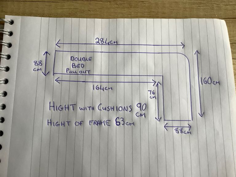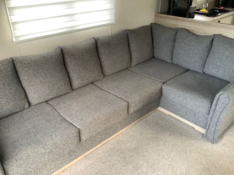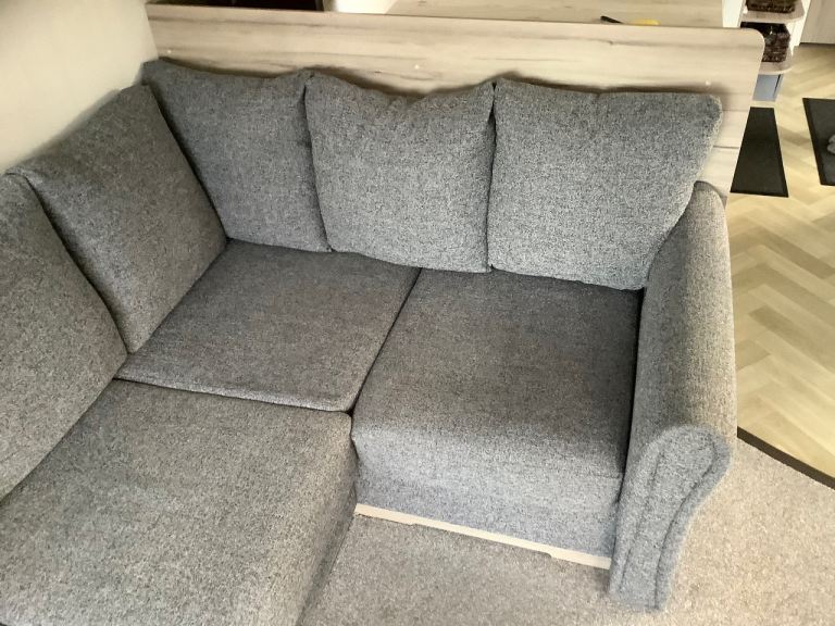 Hi L shape sofa all wool from 2024 Static caravan this will be removed next week 2 year old with very little use Bed has not been slept on would do Mancave also. it is framed in and will be striped down best we can looking for sensible offers pls.