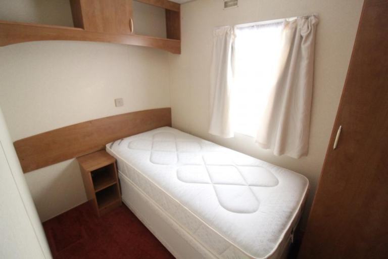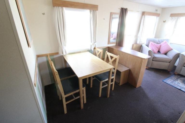 Key features: Double glazed A 12ft wide 2 bedroom caravan. Double glazed. The lounge has free standing furniture and an LPG gas fire. The dining area has a free standing table and chairs. Fitted kitchen with an LPG gas cooker and good storage. Separated shower room and toilet. One twin bedroom and one double bedroom. A very good 2000 caravan. .