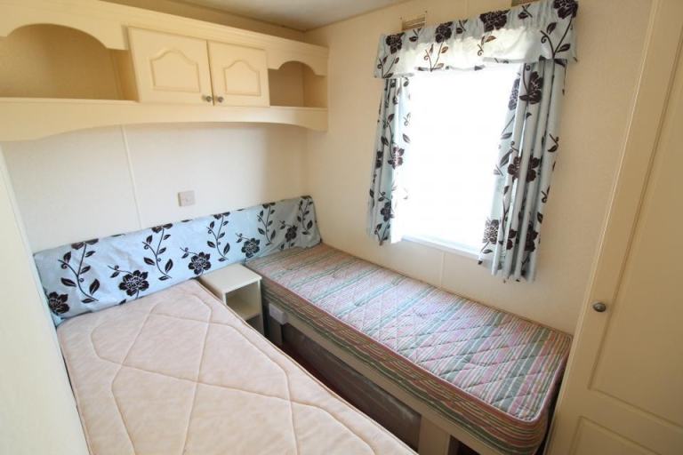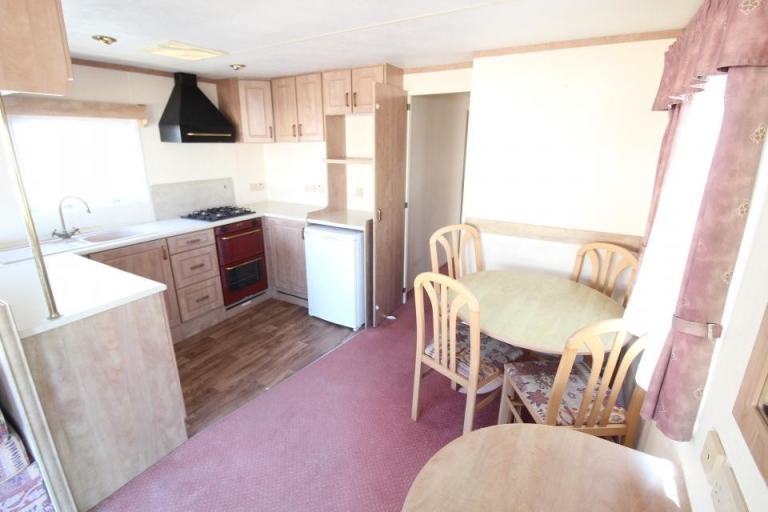A 12ft wide 2 bedroom caravan. The lounge has fixed seating and an LPG gas fire. The dining area has a free standing table and chairs. Fitted kitchen with an LPG gas cooker and hob. The shower room is fitted with a wash basin, toilet and standard shower cubicle. One twin bedroom and one double bedroom with an ensuite toilet. A good 2000 caravan. .