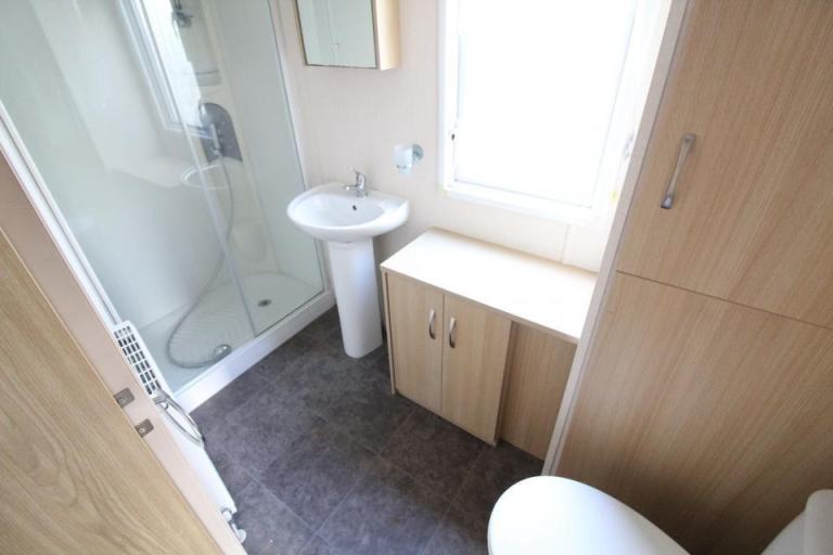 Key features: Double glazed LPG gas central heating Pitched roof Apex ceiling Two toilets A 12ft wide 3 bedroom caravan. Double glazed and centrally heated. The lounge has free standing furniture, apex ceiling and an electric fire. The dining area has a free standing table and chairs. Fitted kitchen with an LPG gas cooker and good storage. The shower room is fitted with a wash basin, toilet and large shower cubicle. Two twin bedrooms and one double bedroom with an ensuite toilet. A good 2015 caravan. .