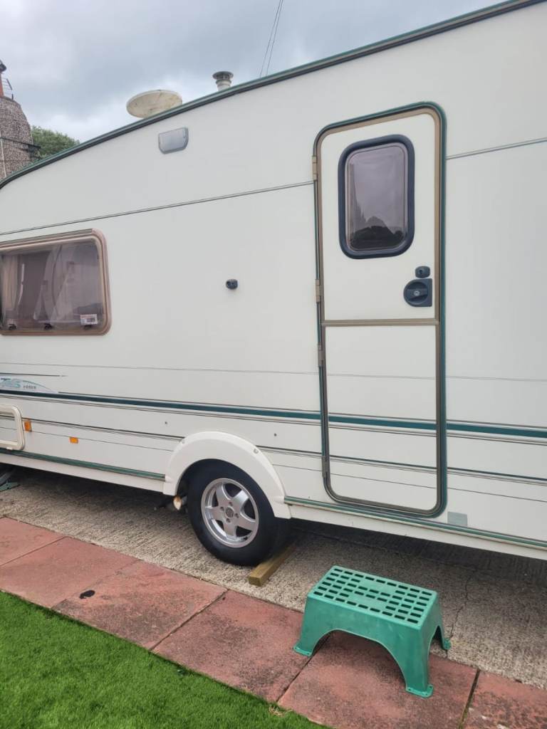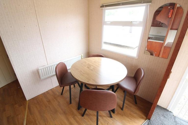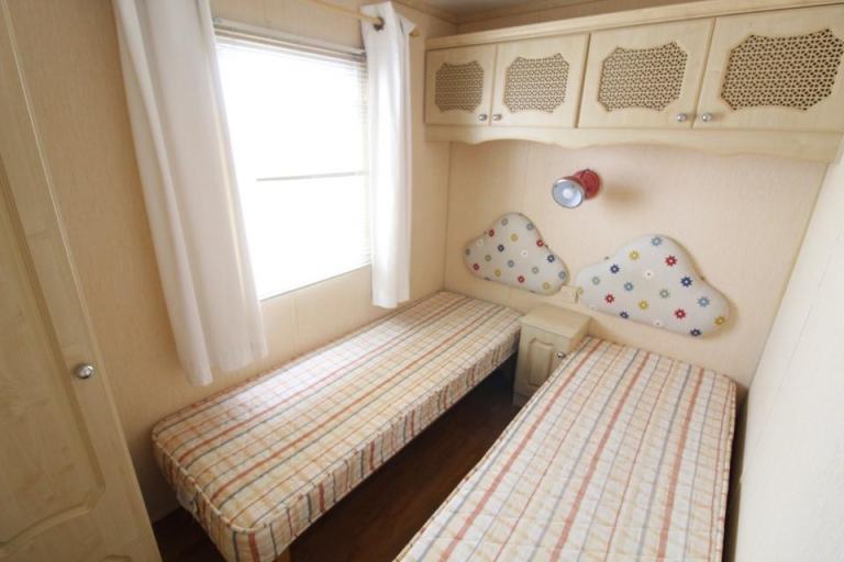 A 12ft wide 2 bedroom caravan. The lounge has free standing furniture and an LPG gas fire. The dining area has a free standing table and chairs. Fitted kitchen with an LPG gas cooker and good storage. The shower room is fitted with a wash basin, toilet and a standard shower cubicle. One twin bedroom and one double bedroom. A good tidy 1999 caravan. .