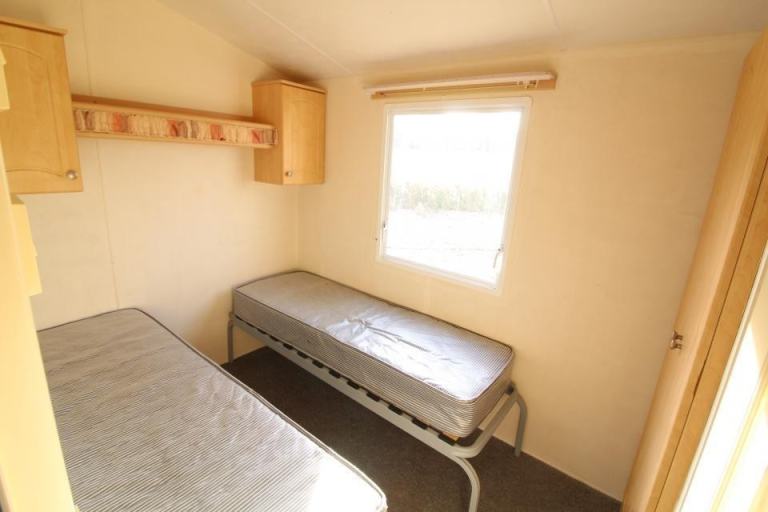Key features: Pitched roof Apex ceiling Large shower A 12ft wide two bedroom caravan. The lounge has fixed seating, apex ceiling and an LPG gas fire. The dining area has fixed seating and a free standing table. Fitted kitchen with an LPG gas cooker. Separated shower room and toilet. The shower room is fitted with a large shower cubicle. One twin bedroom and one double bedroom. A 2008 caravan. .