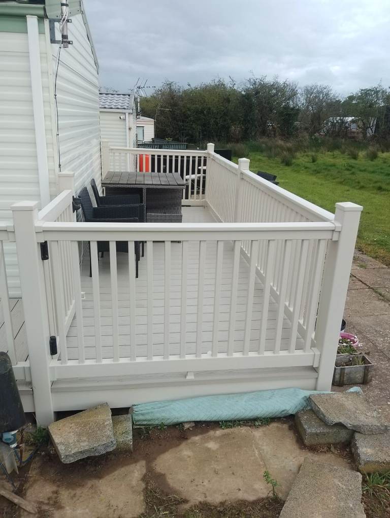 Composite decking area side and rear with outside furniture