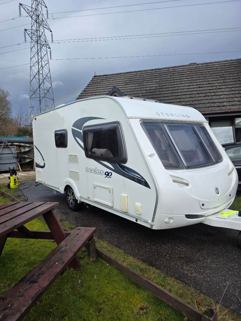 Sterling Eccles Topaz 90 two berth carvan,has mover and full of accessories free with van.blowup porch awning, Winter cover bottles water containers cables ramps hitch lock and TV