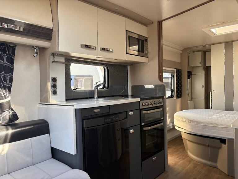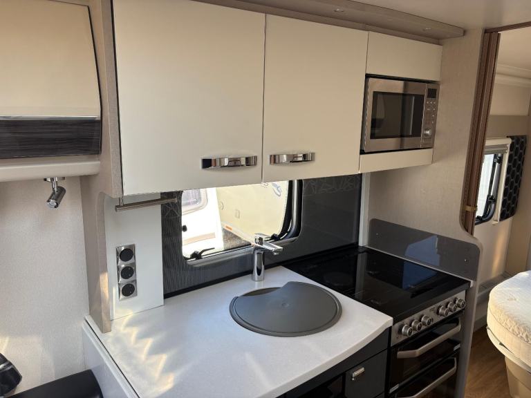 HOT/COLD WATER, LARGE FRIDGE/FREEZER, 240V ELECTRICS, HOB/GRILL, OVEN, MICROWAVE ALDE CENTRAL HEATING, FLYSCREENS/BLINDS,TV AERIEL, SKYLIGHT, ALKO STABILISER HITCH,ALKO ATC, MOTORMOVER