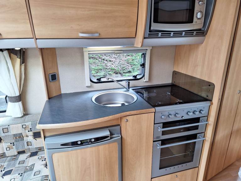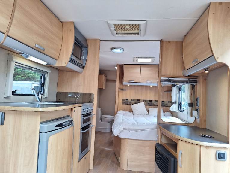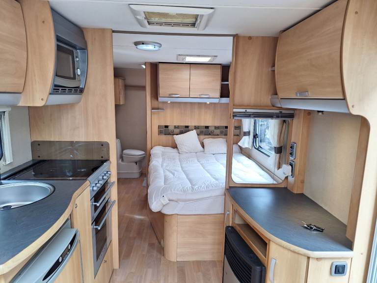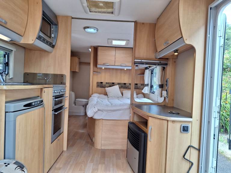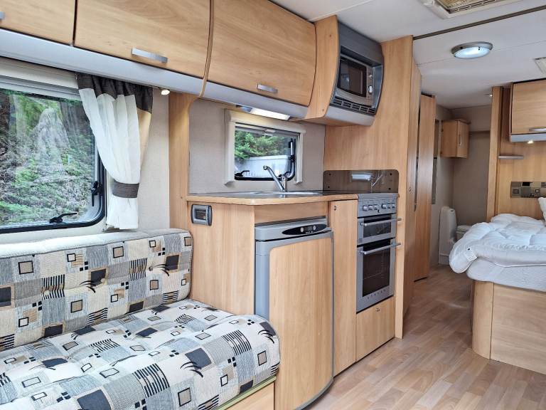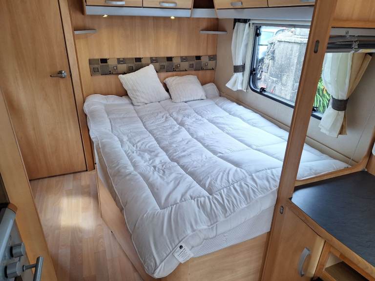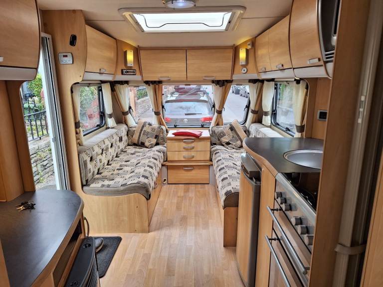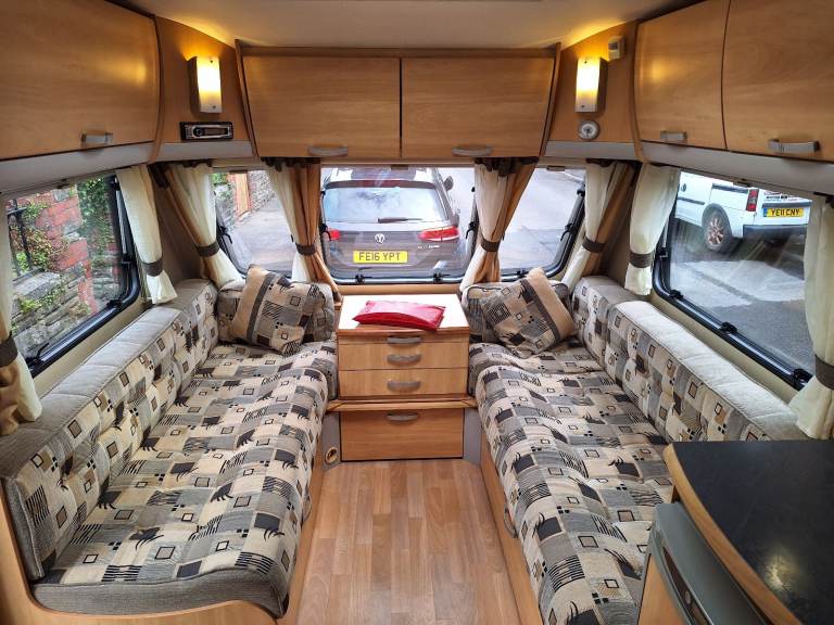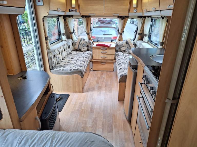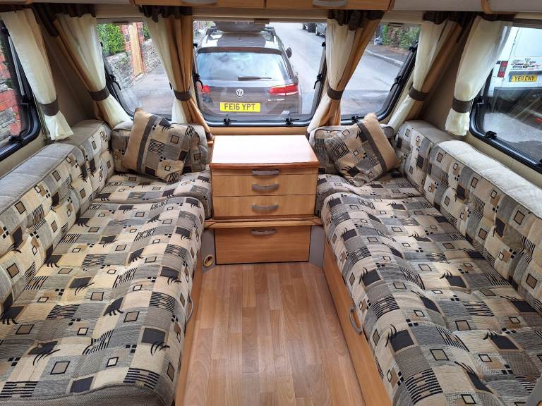 Long day beds to the front which turns into a double bed night and fly blinds all round Oven 4 ring hob and grill 3 way fridge freezer hot and cold water cd player caravan is all nice and clean Viewing welcome all ready to go viewing and in Aberdare South Wales