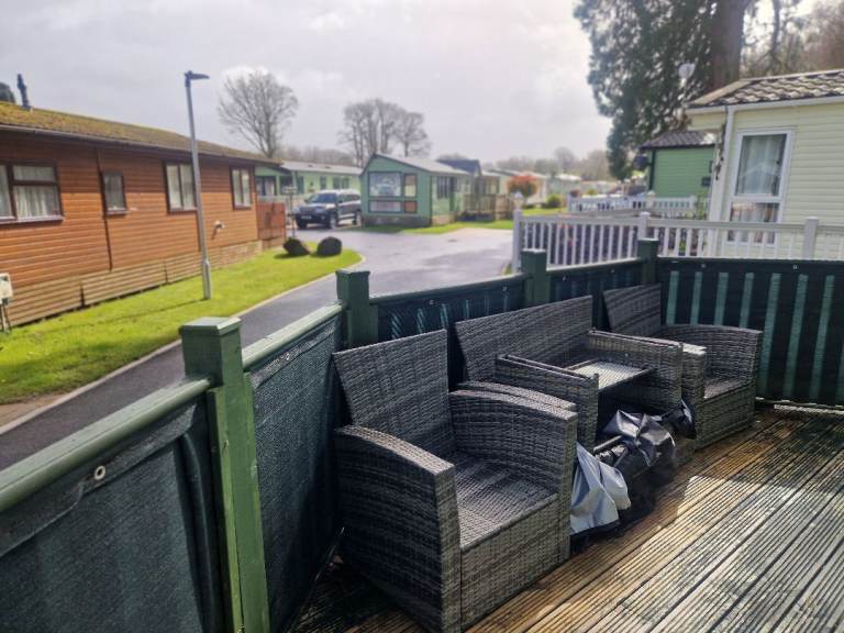 This stunning static is positioned in a sought after spacious corner plot with private drive, a huge decking to side and front with rattan patio furniture included and french doors that open up onto the private decking.