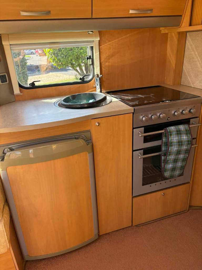Fully fitted with Gas Hob and Electric cooker, Fridge, Air Heating, Carpets, Shower, Chemical Toilet, Sink and Hand Wash Basin.