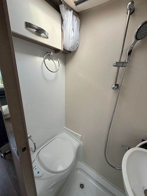 This Swift Basecamp 2 Plus offers a high level of specification, featuring a solar panel, external 230v socket, BBQ point, external shower point, Maxview Roam WiFi and motor mover.