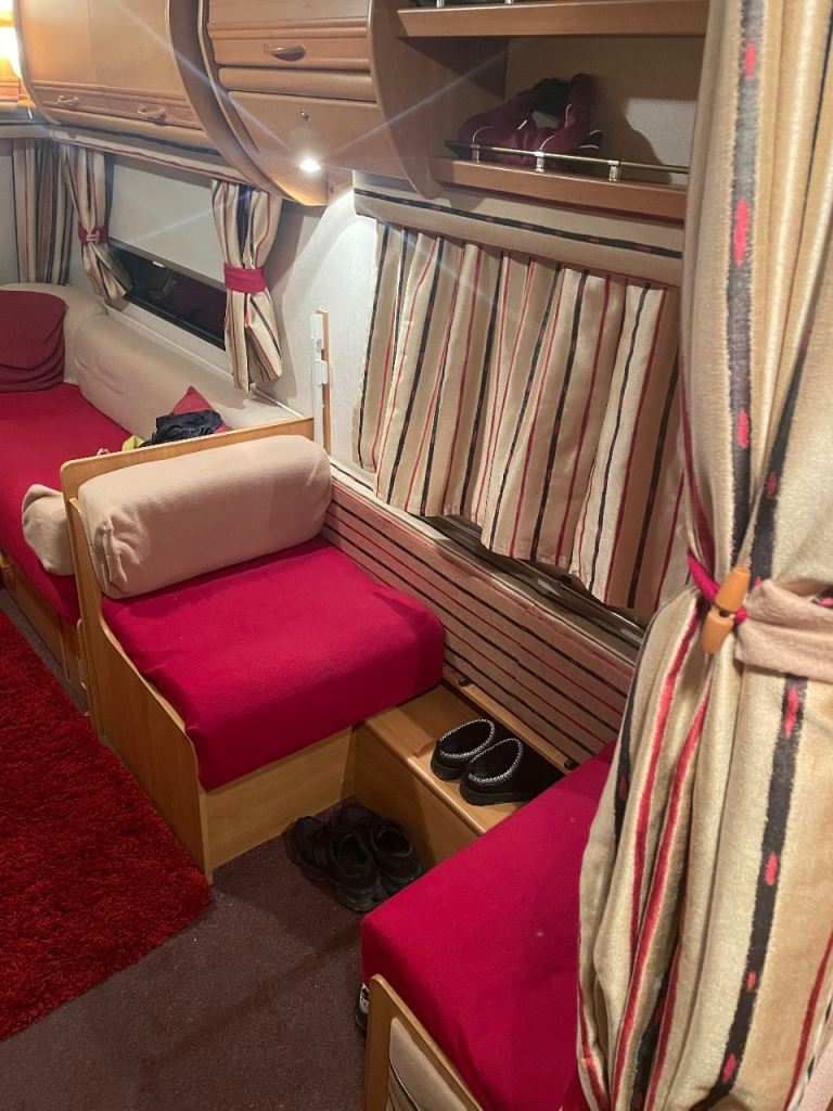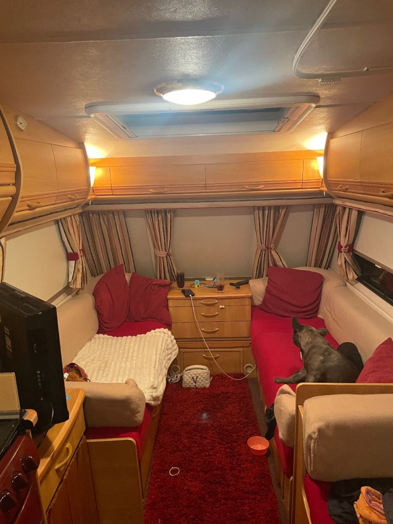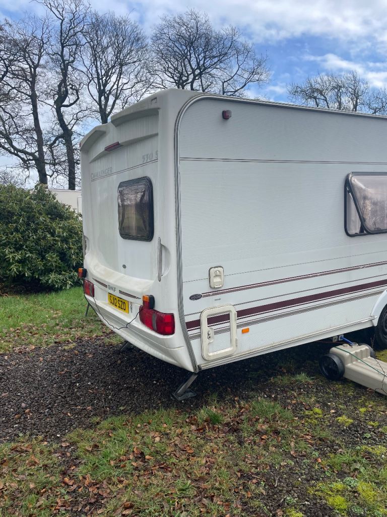Selling our challenger 4 berth caravan. Double at front and turns into bunks as well. Minted caravan everything works as it should except the lights on the outside I changed the plugs last year and think I’ve wired them up wrong as we’re working before I done that but have lights I bought of Amazon on it . We have been away in it this weekend so just going to leave it on site here if not sold will be back at storage on Wednesday it’s currently next to Cumbernauld in a wee caravan park. Any questions feel free to ask . ( caravan will come with everything in it tv , plates cutlery sleeping bags etc if wanting them )