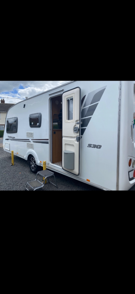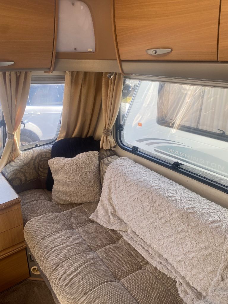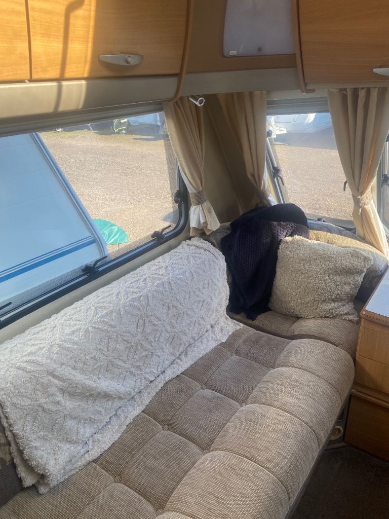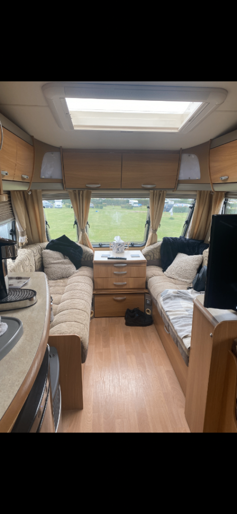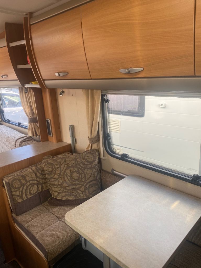 Here we have a Swift challenge (2010) 4 berth caravan with Motor mover , 2 owners from new, The caravan is in great condition inside for age, with a dinette are that turns into bunk beds, and front seating that turns into a double bed , carpet throughout , age related marks on outside , Chris registered, service history, microwave, truma heating, , end bathroom with p shape shower, Thetford refrigerator, Cooker , comes with water barrel, waste container, swift 260 canopy, electric hook up,