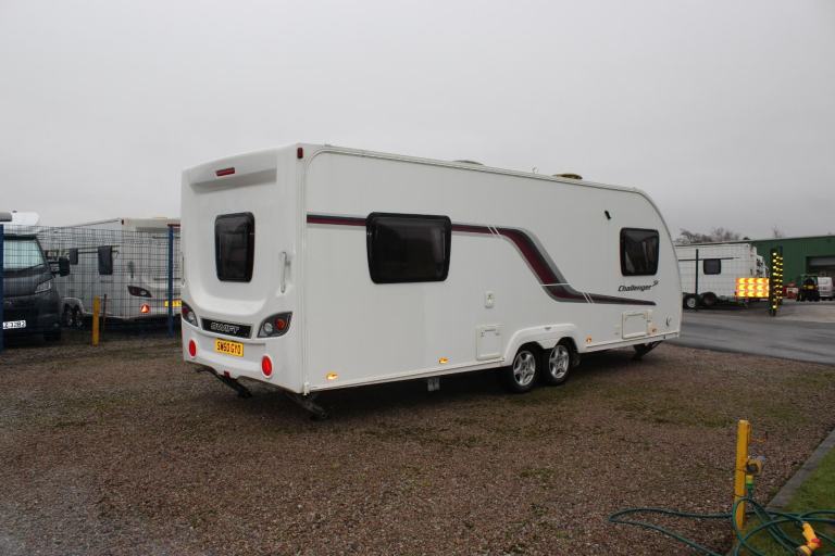 We have just taken in this lovely 2013 Swift Challenger 590 SE twin axle 6 berth touring caravan, not many of these layout vans on the market at all! The caravan comes with two bench seat to the front, a well equipped kitchen and washroom with separate shower cubicle to the centre and a spacious dinette to the rear that also has folding bunks either side. The caravan is in excellent condition both inside and out and has come from a pet and smoke free home. The caravan will come supplied with a full habitation check and 3 months dealer warranty ready for it's new owners.
