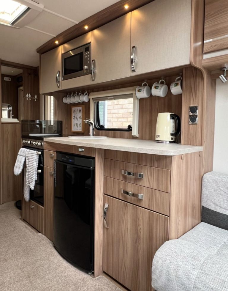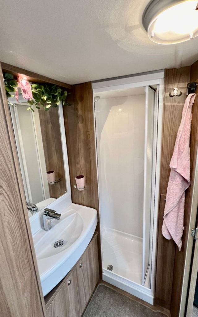 Very good condition, service checked June 2025,.no damp, pull out dining table, bunk beds with ladder, great size fridge, microwave, pull out extra large double bed, great shower.Two new tyres, motor mover. Hitch & wheel locks. Aqua roller, waste grey water container. Electric hook up cable.