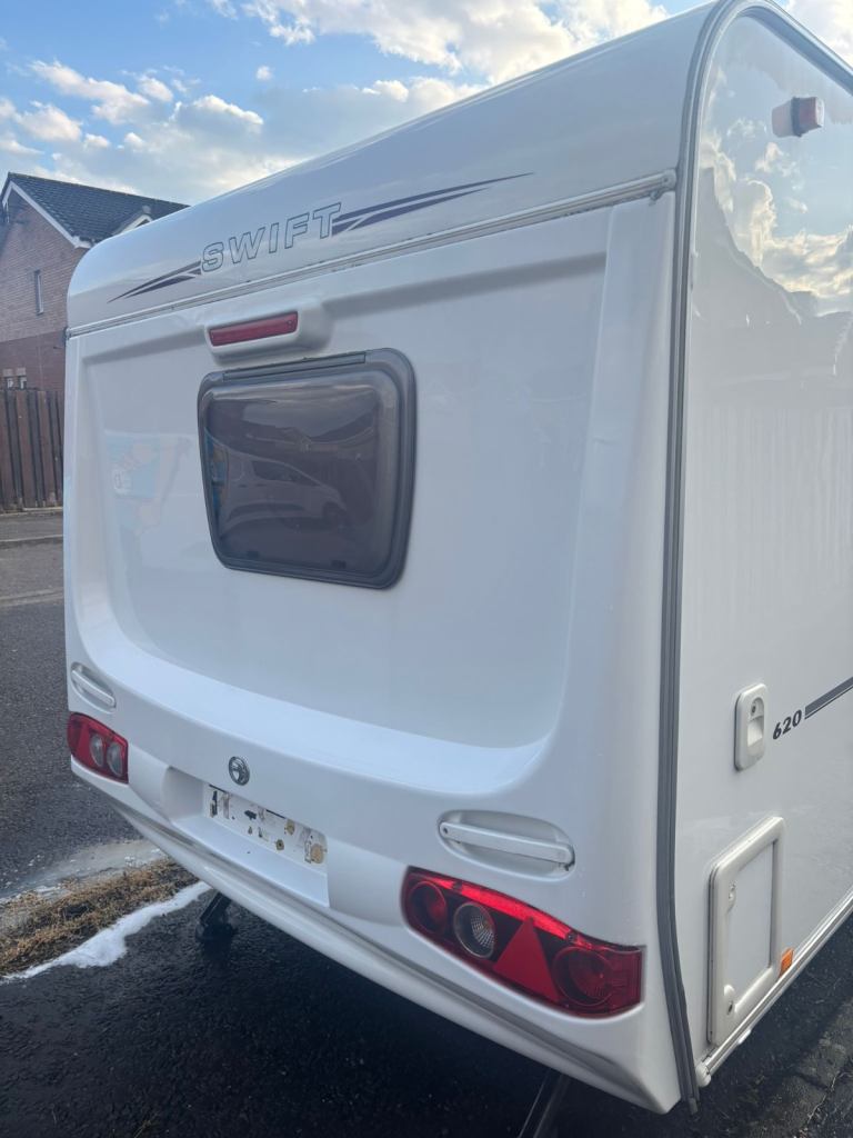 Swift Carisma 620 Fixed Bed Caravan 4 Berth for sale. 2009 Caravan in great condition well looked after by myself and previous owners. Has the usual slight wear and tear stuff. Recently been renovated by myself so any questions please ask. Has all the usual stuff fridge fire all working. Really nice caravan. Fixed bed with folding door and great size bathroom with all working taps and hot shower. Has Dorema Daytona awning with upgraded fibre glass poles £1200 new.