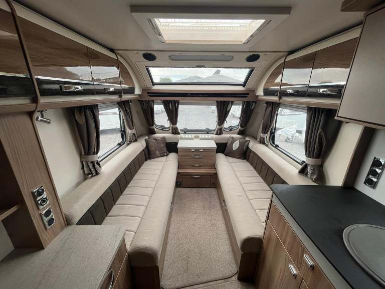 SWIFT CONQUEROR 480 / 2 - complete end dressing room including separate shower enclosure, vanity unit, heated towel rail and toilet - central nearside dresser - central offside kitchen - 2 x singles / double at front - benefitting from ALDE central heating and upgraded soft furnishings, this limited edition model has plenty to offer - in very good condition both inside and out! Comes complete with a brand new full or inflatable awning, 12 months warranty and FITTED MOTOR MOVER!,