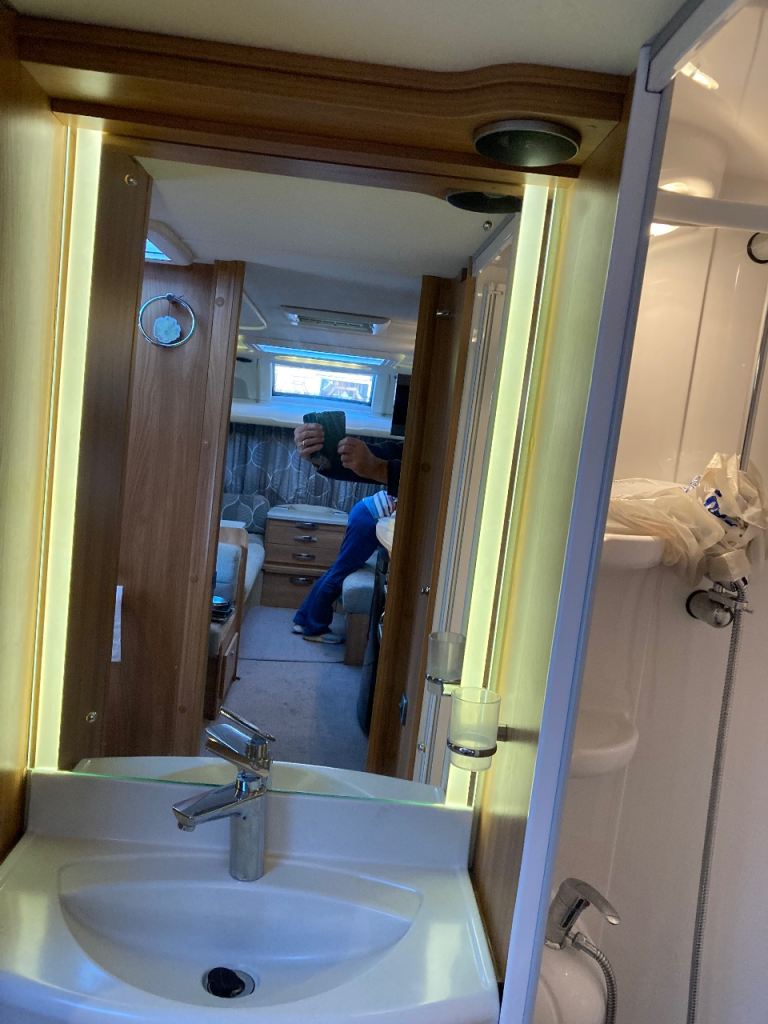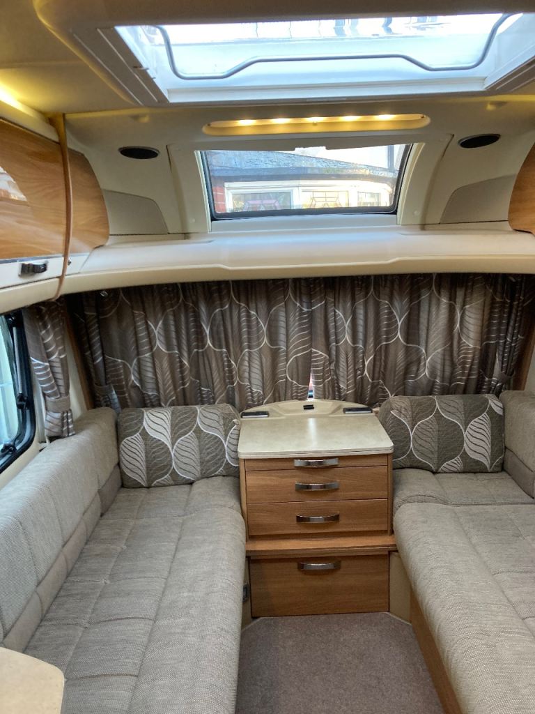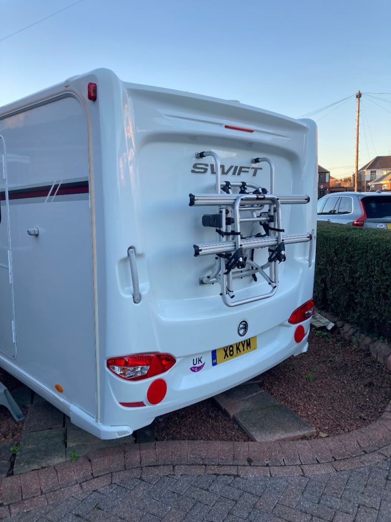 Two long seats at front which can be used as two single beds or a very large double. Side dinette which converts to a single bed or bunk beds. An electric motor mover and an electric drop down/ electric rise bike carrier has been added. The caravan is stored under a “ Specialised Caravan cover” which will come with the sale.This is a well loved and cared for caravan. Pet and Smoke free!. £11,000 Ono. Sale by bank transfer only prior to collection of the caravan.