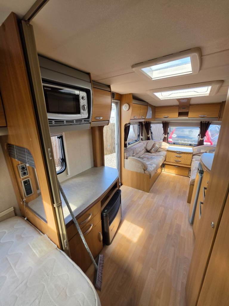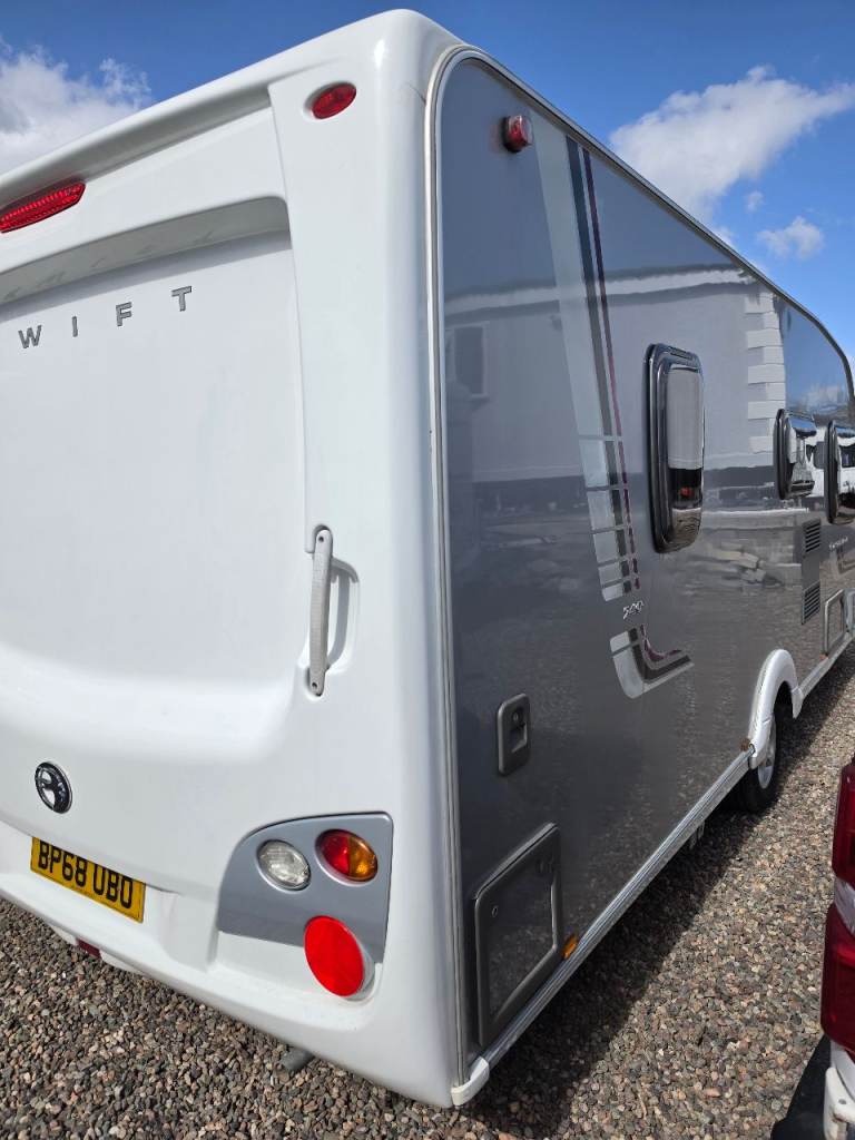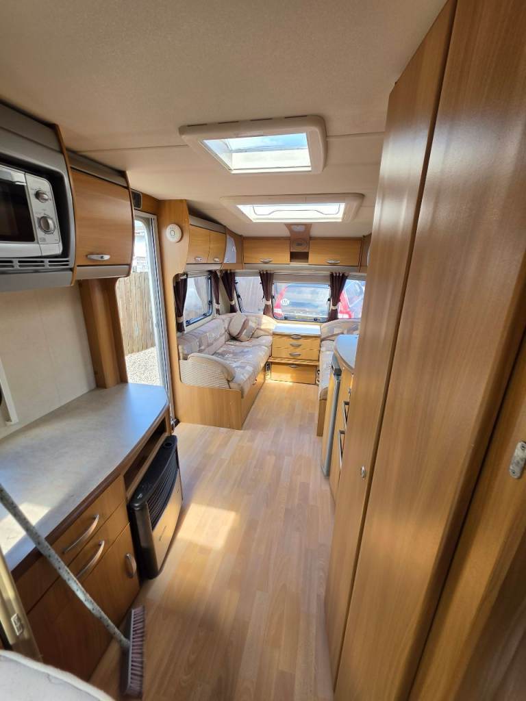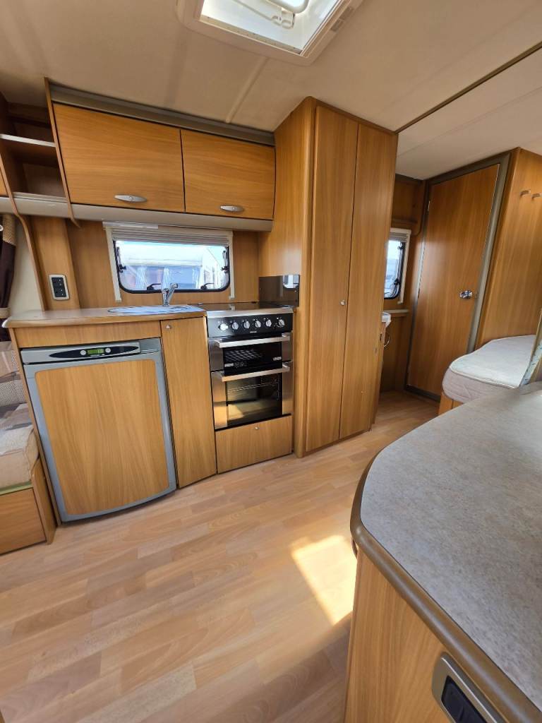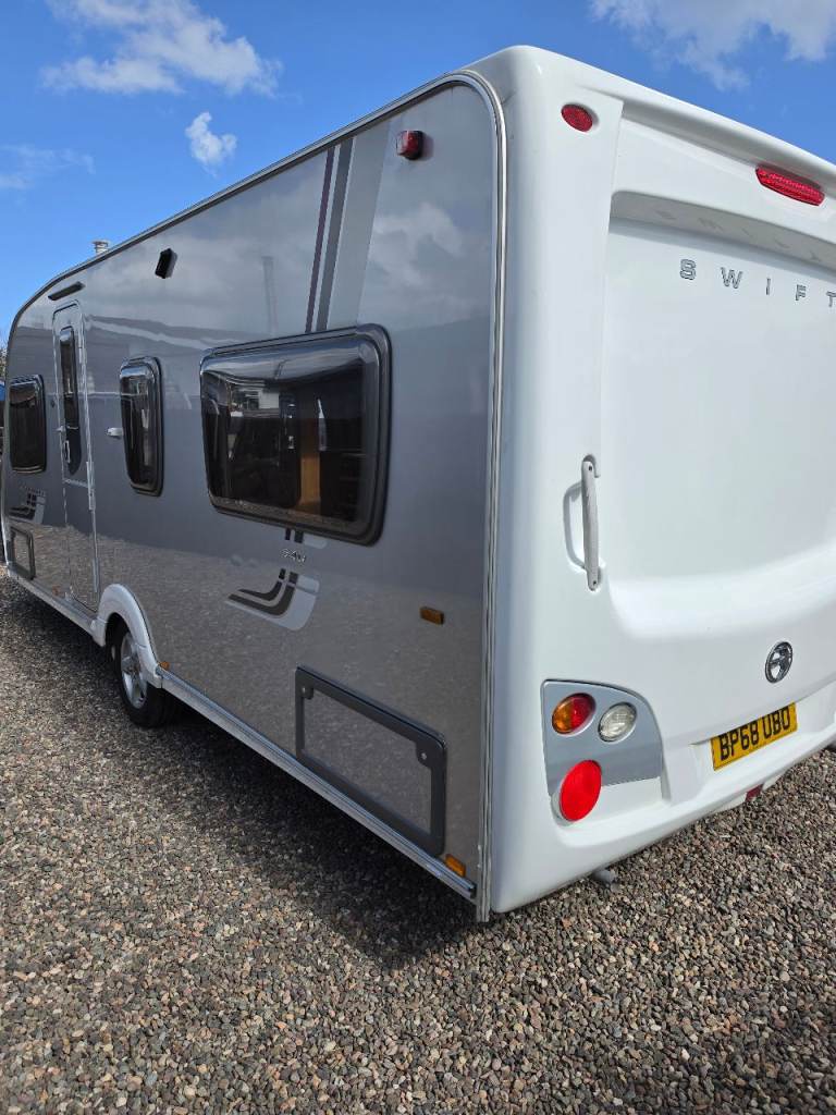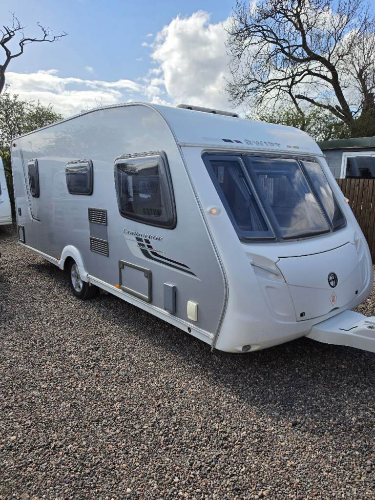 Swift conqueror 540/4 berth fixed bed 2010 motor mover top spec oven hob and grill 3 way fridge blinds and fly nets gas and electric heating microwave cassette toilet and shower hot and cold water good clean condition a couple of dents on outside but a really good we caravan £5650 px welcome