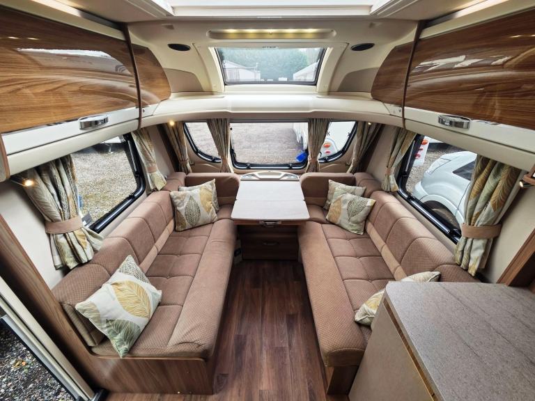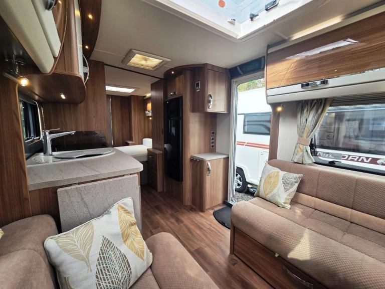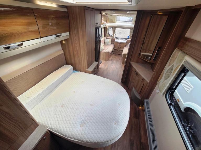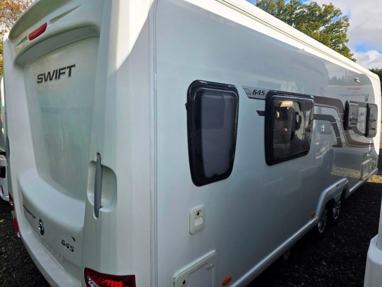 Swift Conqueror 645 2015 4 berth twin axle transverse island bed touring caravan for sale. Top of the range model with Alde wet heating, onboard water tank, alarm system and solar panel. Lounge area with parallel sofas making into double bed. Central chest of draws and pull-out table. Kitchen with hobs, grill, oven, full height fridge-freezer, sink, draining area, microwave and cupboards. Overhead 2 way rooflight extractor fan. Mid rear bedroom with pull out transverse island bed. Wardrobes either side and underbed storage area with outside locker access. Rear washroom with cassette toilet, large separate shower, LED mirror, opaque window, cupboards and fixtures. Specification includes Alde central heating and hot water, roof mounted solar panel, panoramic sunroof, onboard water tank, alarm system, LED lighting, drop down fitted carpets, ALKO ATC, ALKO stabisiler hitch, alloy wheels, external 240v socket, external BBQ point and CD-radio system. Extras include aquaroll, wastemaster, 2x ALKO wheel clamps, hitchlock, breathable caravan cover, front travel cover, freestanding Tv, leisure battery, gas bottle, step and more. All caravans serviced and valeted before collection. Full handover demonstration for buyer. 3 month warranty for peace of mind with option to extend up to 24 months. Part exchange and finance options available. Many additional photos available. Video viewings available. Spec Includes: 20154 BerthTwin AxleTransverse Island BedU Shaped LoungeCentre KitchenRear WashroomGas HobsElectric HobGrillOvenMicrowaveFull Height Fridge with Freezer CompartmentBlindsFlyscreensDoor FlyscreenStatus Directional AerialAlde Central Heating & Hot WaterOnboard Water TankSunroofHeki RooflightPanoramic SunroofRoof Mounted Solar PanelCassette ToiletHand WashbasinSeparate ShowerMains ElectricsBattery ChargerAlarm SystemGas BottleSpare WheelALKO ATCALKO Stabilising hitchRadioService HistoryWidth: 2.31 mShipping Length: 7.99 mMIRO: 1622 kgMTPLM: 1900 kgAwning Rai Size 1065 cmHabitation Manuals2 Sets KeysCRIS Registered Part exchange welcome. Finance available subject to status. Extended warranties available on most vehicles.This caravan is not a brokerage sale, and owned and sold by STJ Motorhomes, Consumer rights act of 2015 will apply. Please note, this vehicle is not a brokerage unit and as such means that it is compliant with the Consumer Rights Act 2015.