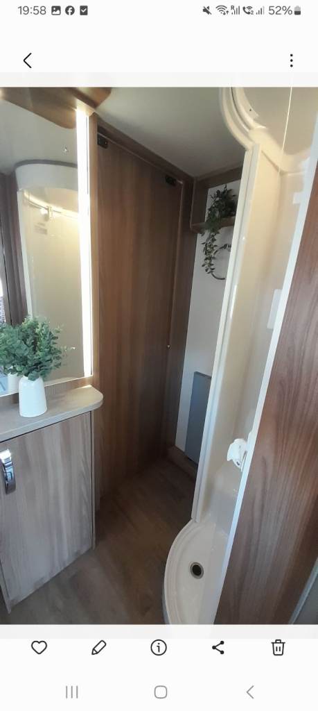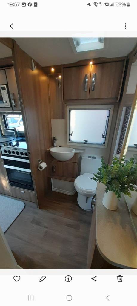 In the centre washroom, there is a separate shower cubicle, cassette toilet and vanity sink with a great deal of additional storage space.