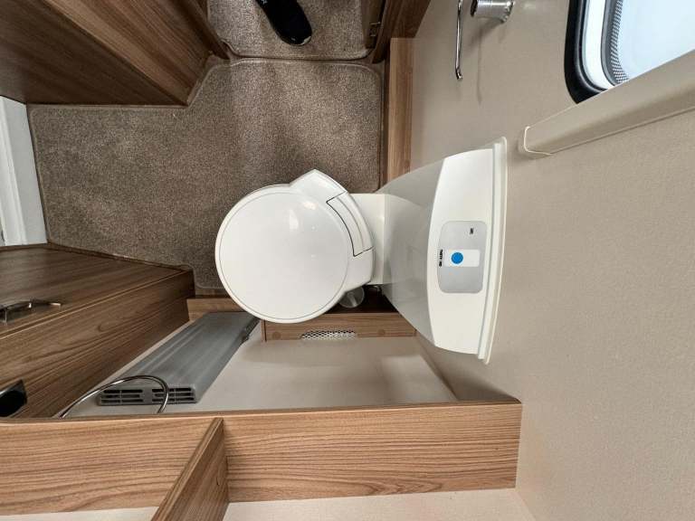 The interior of the model features warm, neutral tones that create a homely and welcoming atmosphere. Large windows and a sunroof allow natural light to flood in, adding to the spacious and airy feel of the caravan. Every detail exudes a sense of prestige and quality, making this model a standout choice.