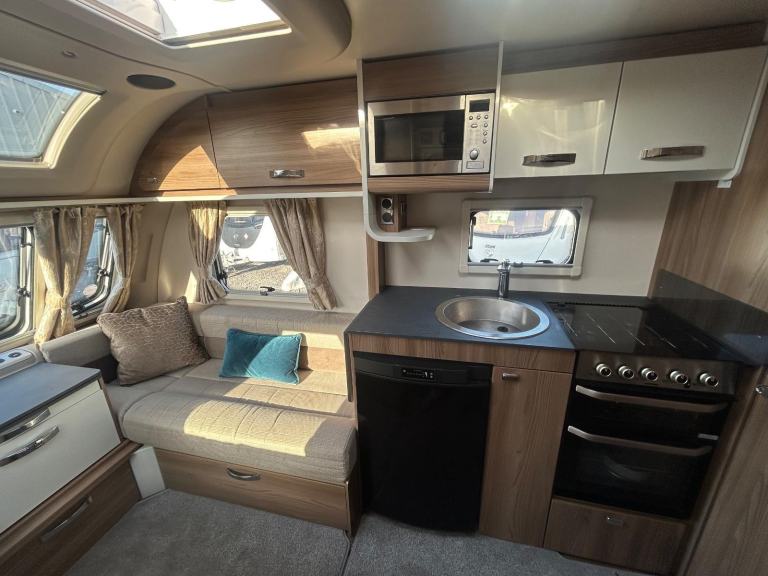 Full rear bedroom featuring a central fixed island bed with adjoining wardrobes - double entry doors to a central dressing room incorporating an individual shower cubicle, toilet and vanity unit - offside central kitchen 2 x singles / double bed / dinette at the front - STUNNING THROUGHOUT this limited edition model benefits from upgraded fixtures, fittings and furnishings altogether providing a 5 star model - comparatively lightweight making it easily towable by a wide range of vehicles.