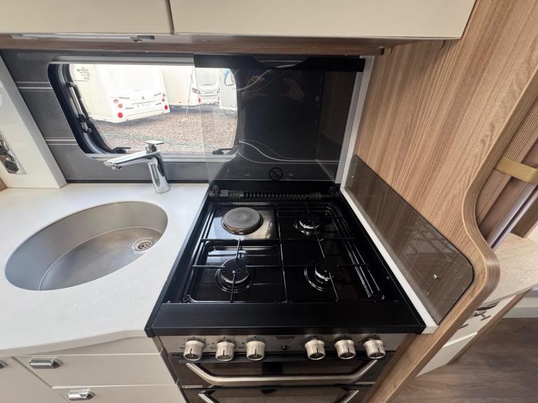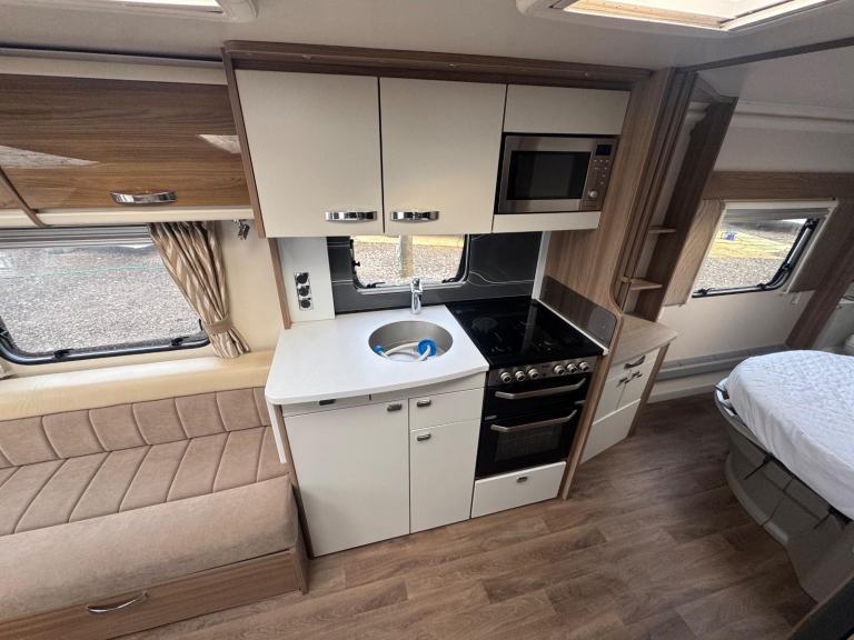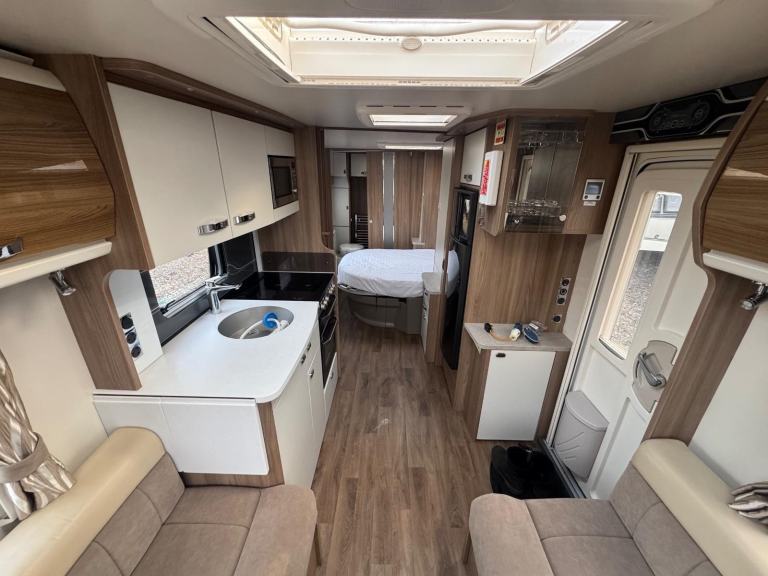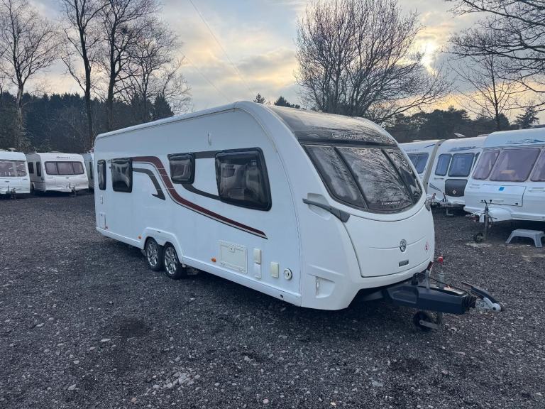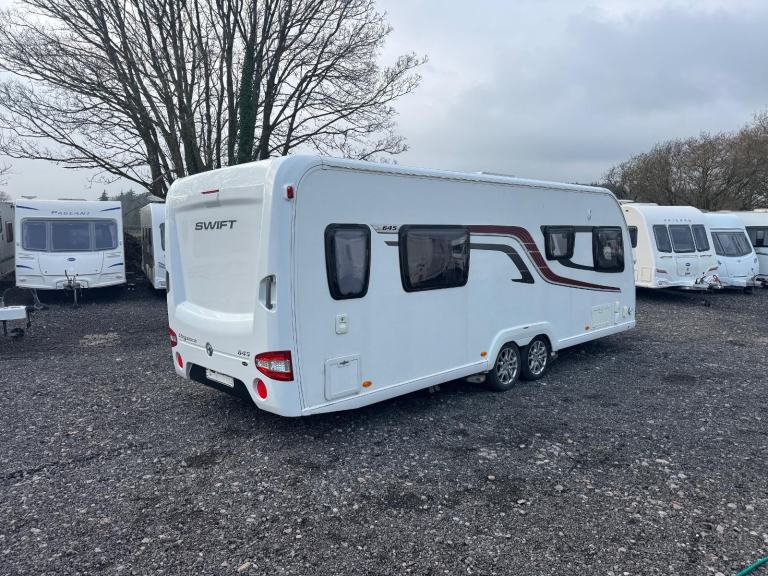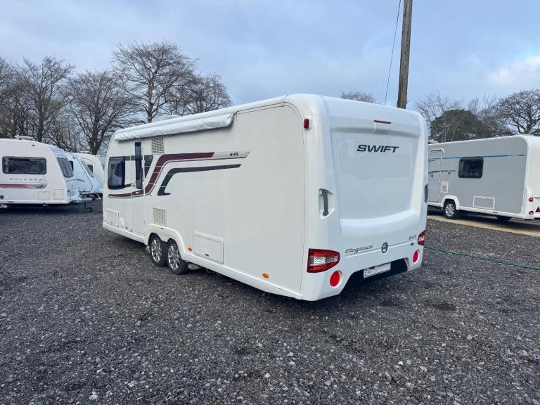 Swift Elegance 645 2015 twin axle 4 berth caravan,in good Condition inside and out. This caravan is fully ready to take camping, it has lots of features and extras what you would expect from a high spec caravan such as this. It includes: hot and cold water, full central heating, full screens and blinds, full oven and grill, three-way fridge/freezer, 240–12 V electricity, HEKI rooflight, Alko Antisway towbar and much more.This caravan comes with a full