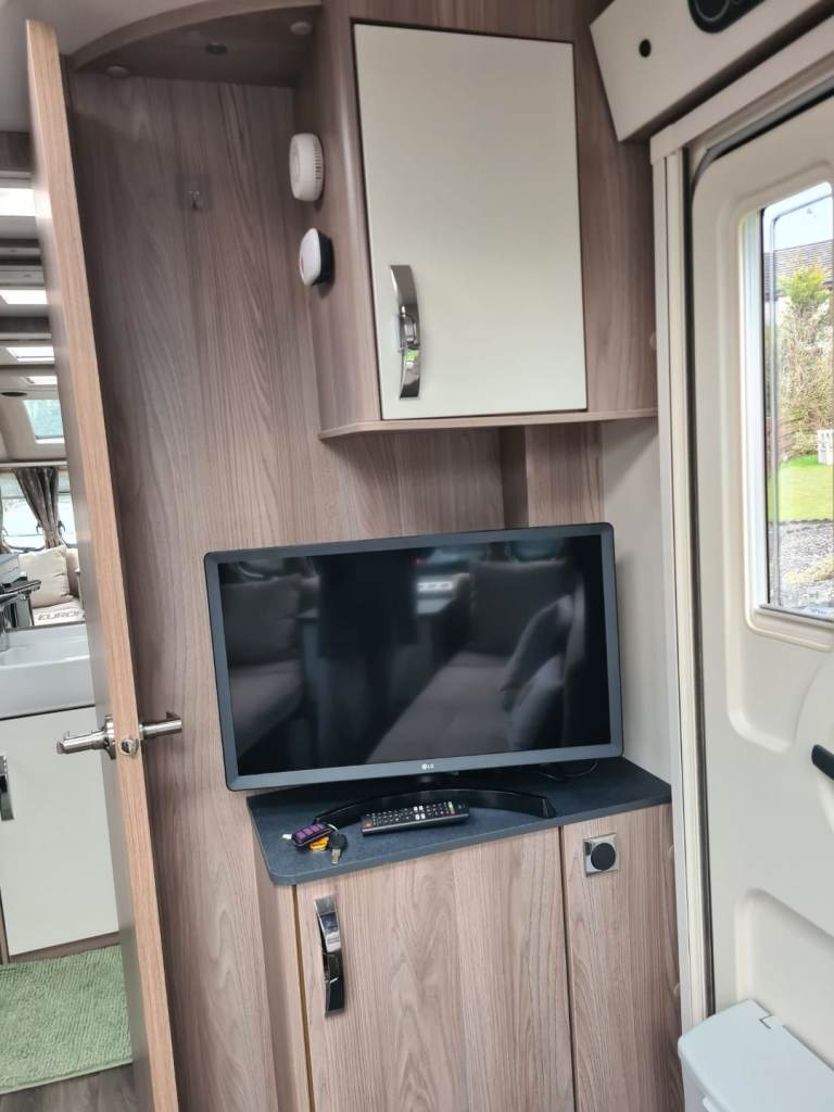 Swift Europa 560 Special edition 2024, 4 berth end bedroom in excellent condition Truma Combi E air heating,gas or electric, Power touch motor mover, Diamond right Leisure Protection with full kit for maintenance, Alko Premium Hitch lock AKS 3004, Alko wheel lock, fitted ATC trailer control Tailored Front Towing cover, Two 2.6kg propane gas bottles, one full, Milenco aero towing mirrors, Many extras including a Vango Varkala Connect 360 Connect 360 air awning, the mallet and peg kit are unused, the awning has only been used a few times, awning carpet and unused skyliners,manual pump and Vango 12 volt electric air beam turbo pump which inflates and deflates, two LG smart TVs, 24 inch in the bedroom and 28 inch in the seating area, Hitchman Aquaroll and Wastemaster with covers, Dreamland protection silent fan heater for the awning, the caravan has exterior main socket and gas barbecue point.electric grill plate for breakfast outside, all kitchen equipment low wattage electric kettle and toaster, pots, cutlery dishes,all good quality, camping tables chairs and two reclining relaxers, throws to protect the seats,Dorma Tencel thick memory foam mattress topper, all hook up cables, service kits waste and fresh long and short for serviced pitch , and more, but the caravan comes with everything you would need, can be seen at my home in Coylton, near Ayr.