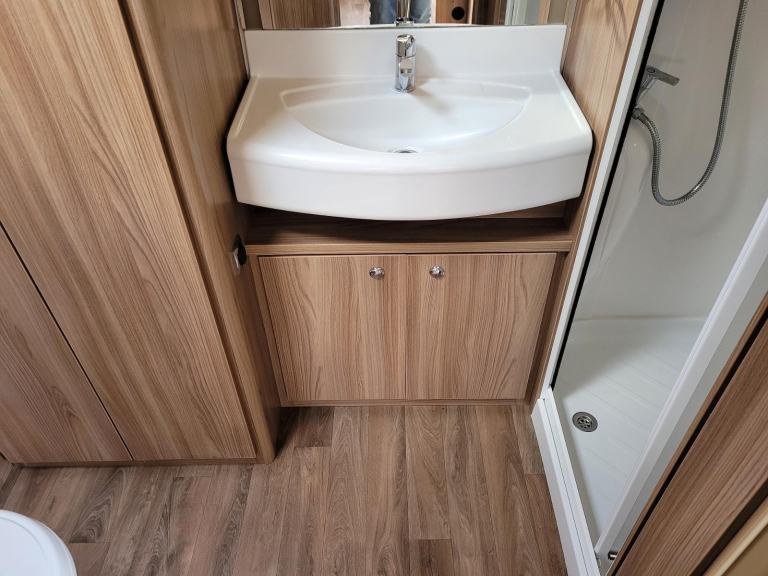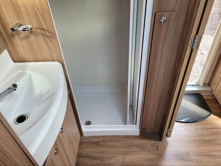 Compact and lightweight two berth caravan featuring long bench seats at the front converting to a large double bed, centre kitchen area complete with an integrated microwave and spacious end bathroom with large separate shower cubicle. Further benefits from having a roof mounted solar panel to help keep your battery topped up.