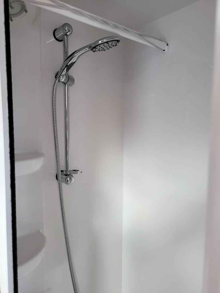 End bathroom with large separate shower cubicle
