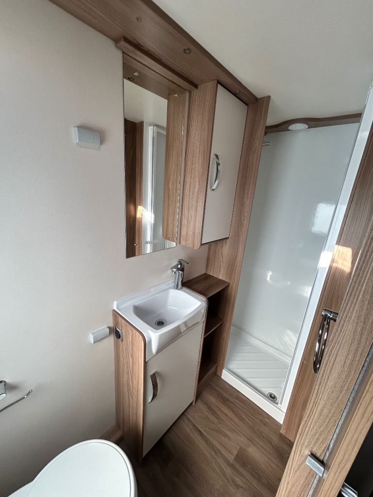 This is a highly sought-after layout featuring a fixed island bed, offering extra comfort and convenience, ideal for couples or families.