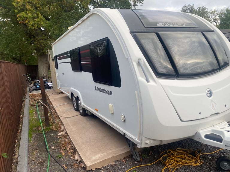 Swift lifestyle 2019 6ew caravan was left in storage and unfortunately was reversed into and was no insurance to cover my damages caravan is fully loaded has all bells and wissols but I don't have to get it repaired damage can be seen on the picture caravan is all up to date with its service and there is stacks of paper work and log book and keys price is 9500 ONO genuine buyers only please THERE IS NO DAMP