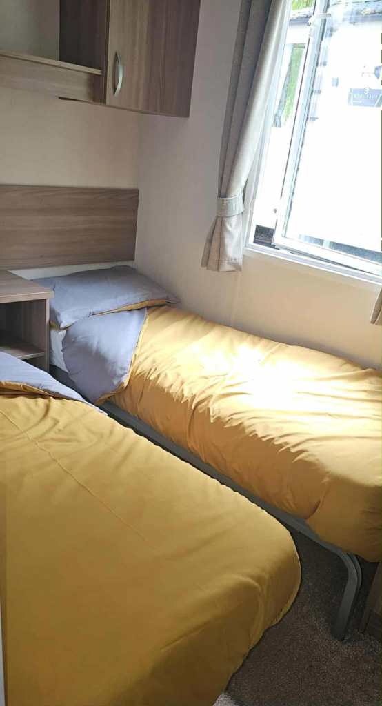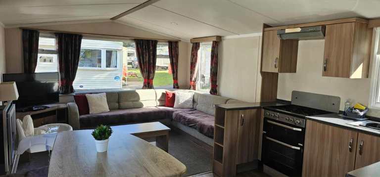 Beautiful double glazed caravan with nice size family living area, with double pull out sofa bed, dining area, nice modern kitchen, single toilet and separate shower room.