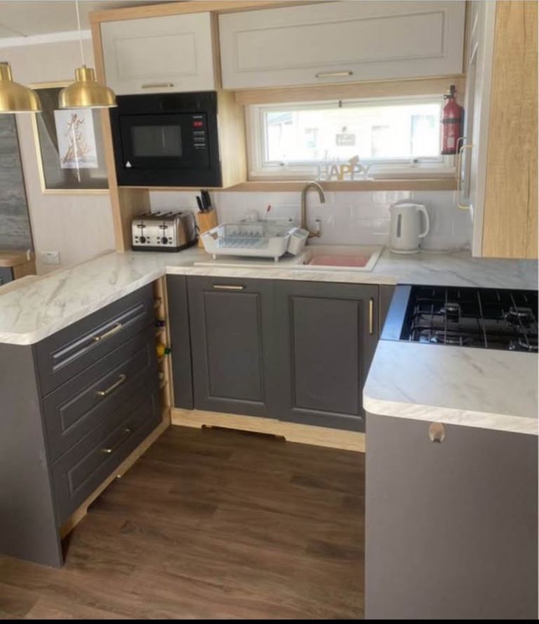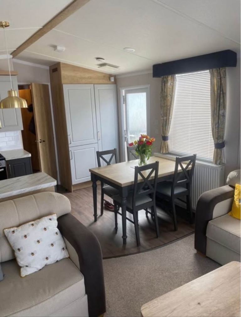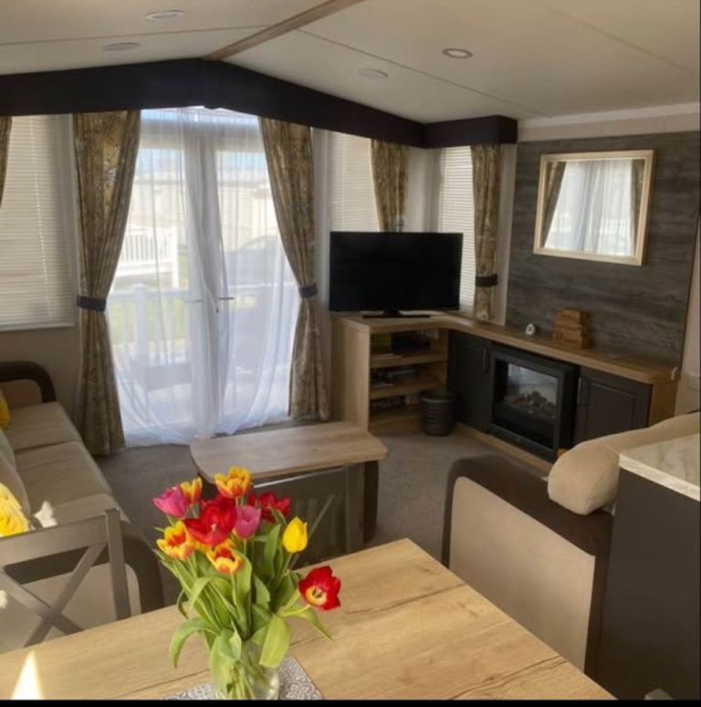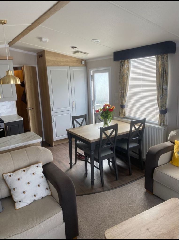 Modern 3-bedroom static home OFF SITE 2018 ( originally sited at Haven) , one double and two twins bedrooms , separate bathroom with shower and ensuite in double bedroom , gas central heating , boiler in excellent condition , everything works including cooker , microwave , fridge /freezer , selling with the furniture , ( beds, table , chairs , sofa , etc ) *Hot Tub NOT included *. Gas certificates and all the paperwork and manuals included . Buyer to arrange their own collection . Flexible viewing times in Northamptonshire .