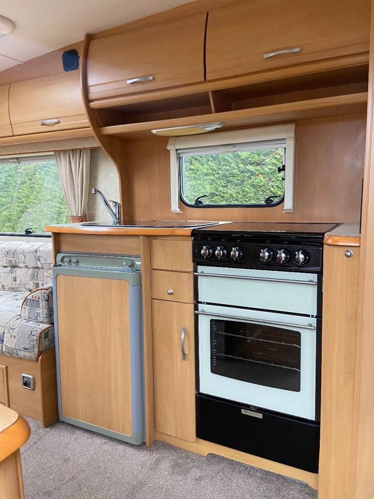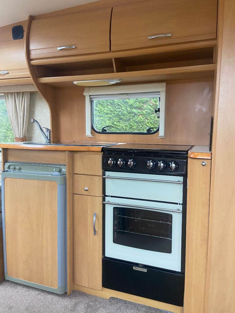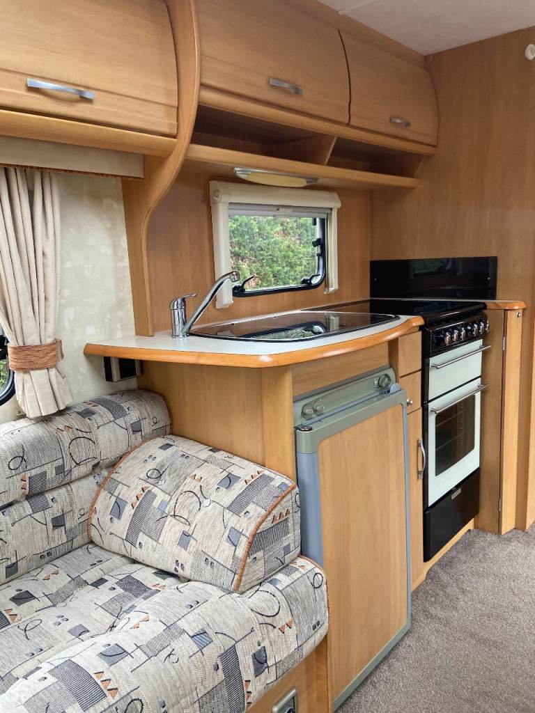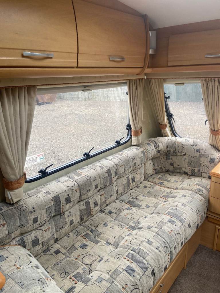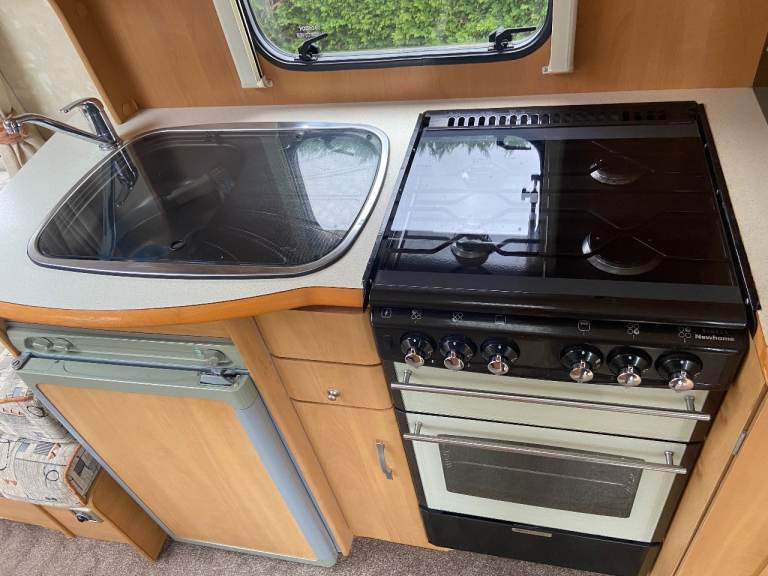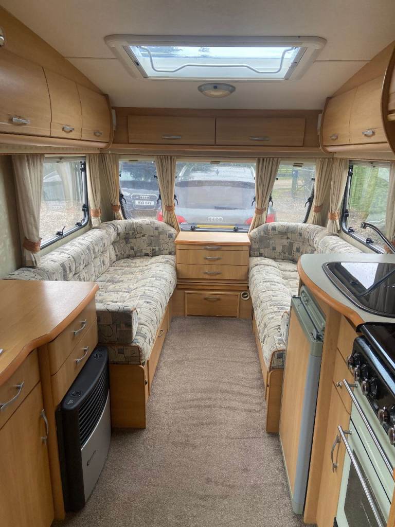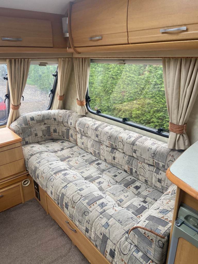 Swift Sandymere 2 berth Caravan with motormover. The caravan has seating at the front that makes up into a double bed or can be used as 2 single beds, Trumatic gas & electric heater with blow air heating, Stoves Newhome gas cooker with oven, hob and grill. Thetford fridge with freezer compartment. Wardrobe and plenty of storage space. End washroom with separate shower, vanity unit & Thetford electric flush toilet.