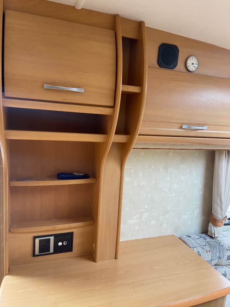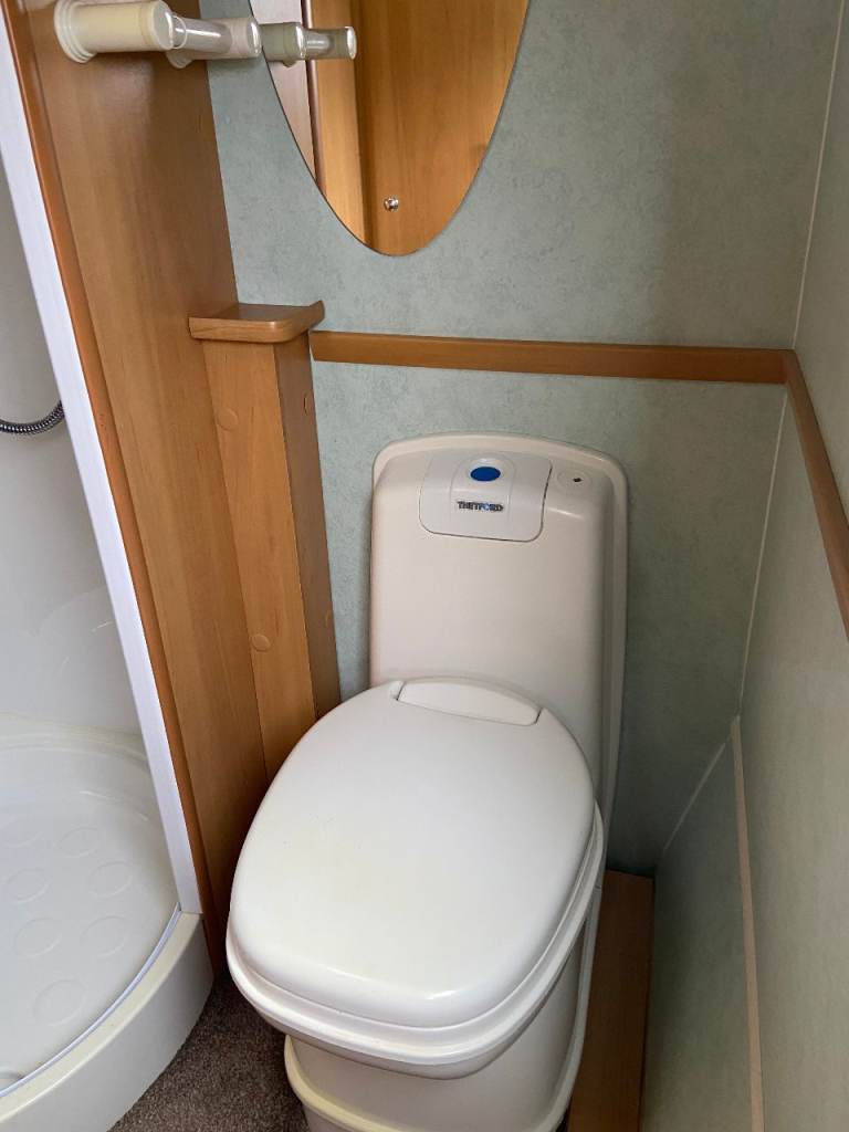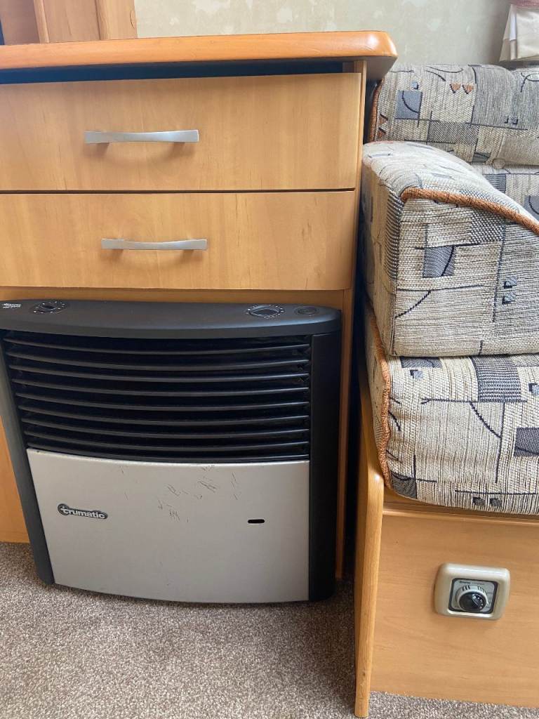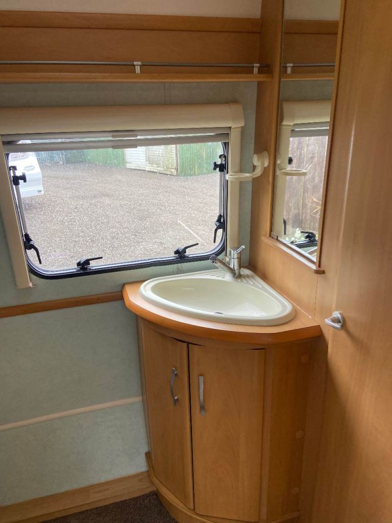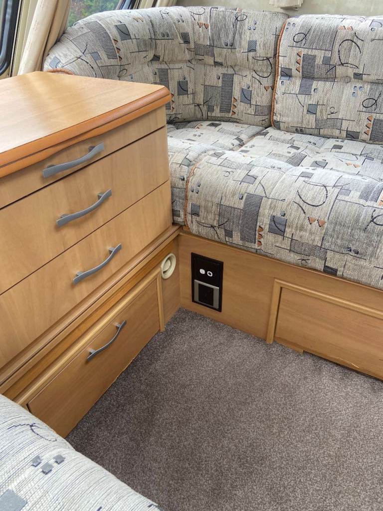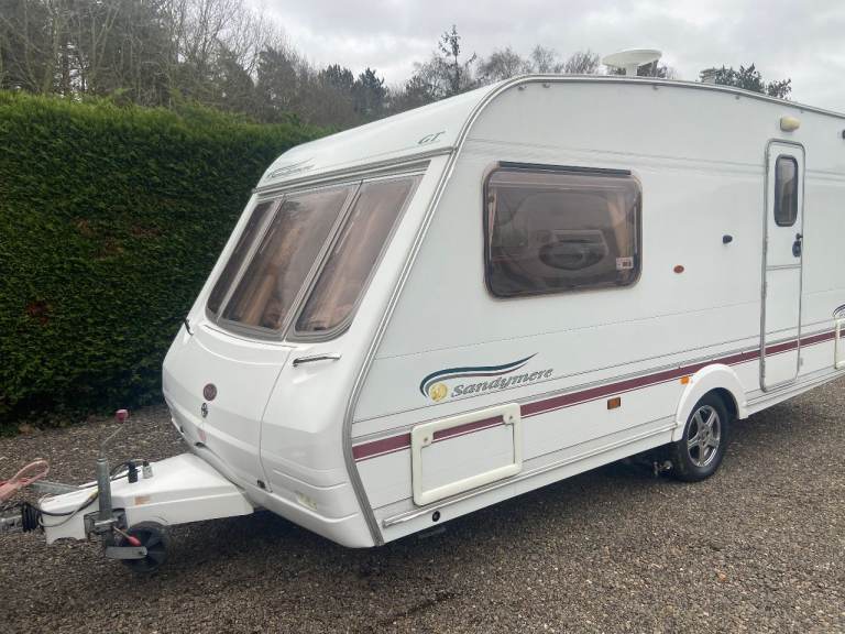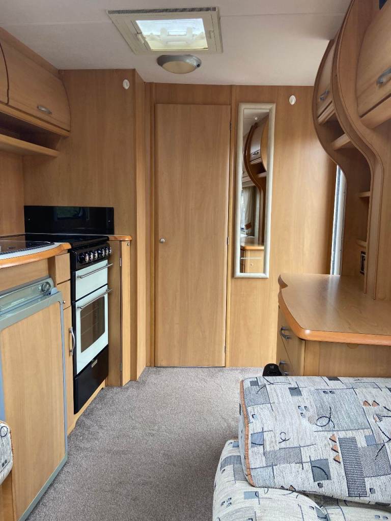 Swift Sandymere 2 berth Caravan with motormover. The caravan has seating at the front that makes up into a double bed or can be used as 2 single beds, Trumatic gas & electric heater with blow air heating, Stoves Newhome gas cooker with oven, hob and grill. Thetford fridge with freezer compartment. Wardrobe and plenty of storage space. End washroom with separate shower, vanity unit & Thetford electric flush toilet.