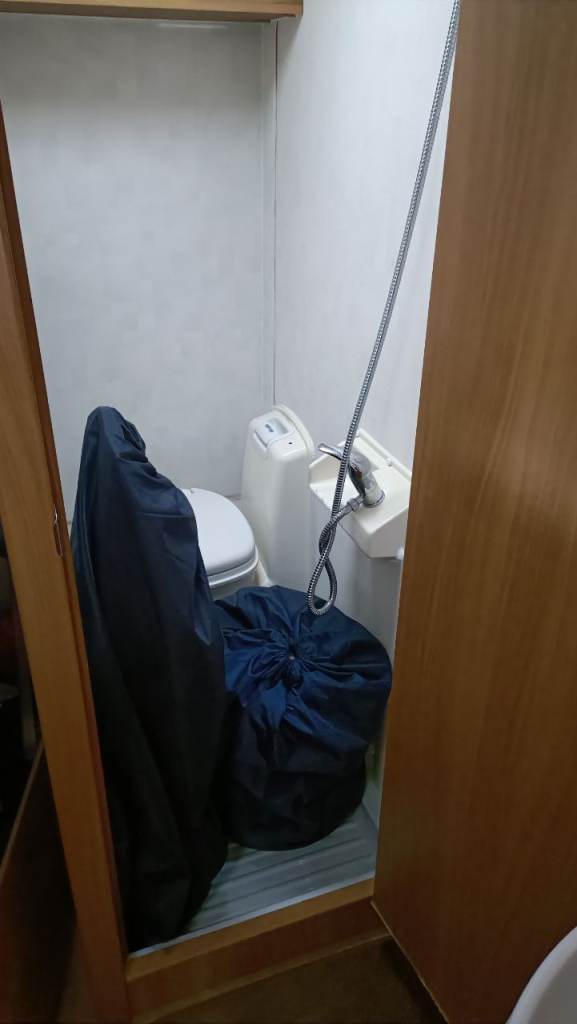 Shower and toilet cassette at the rear