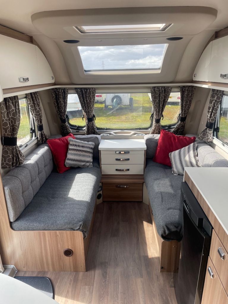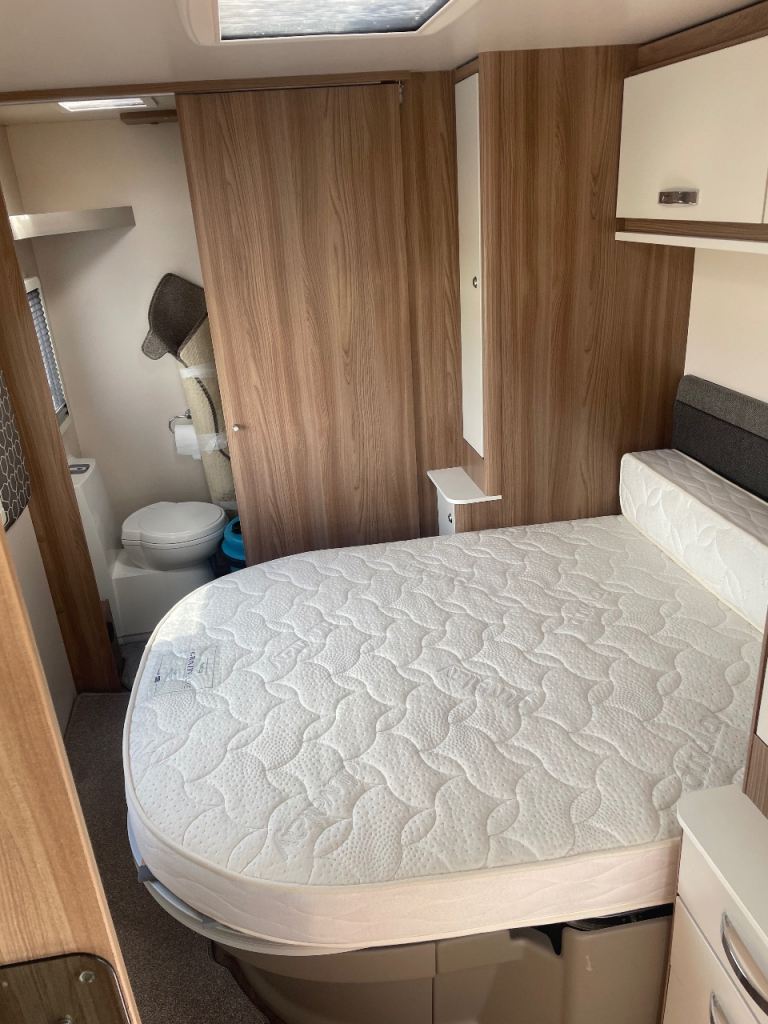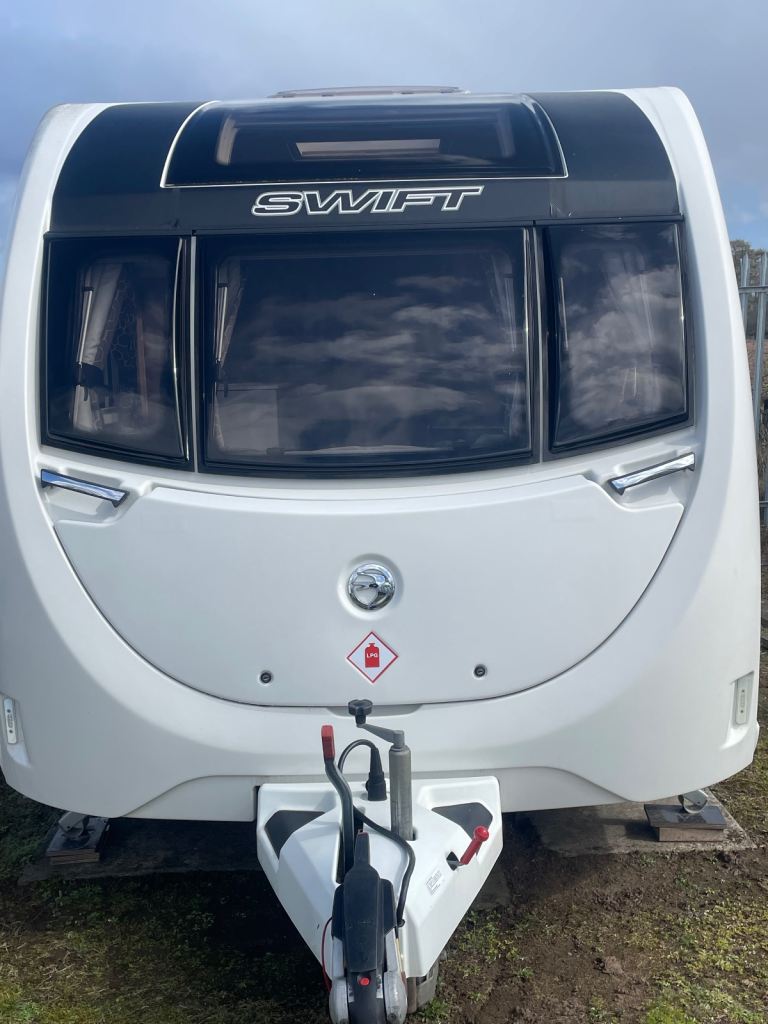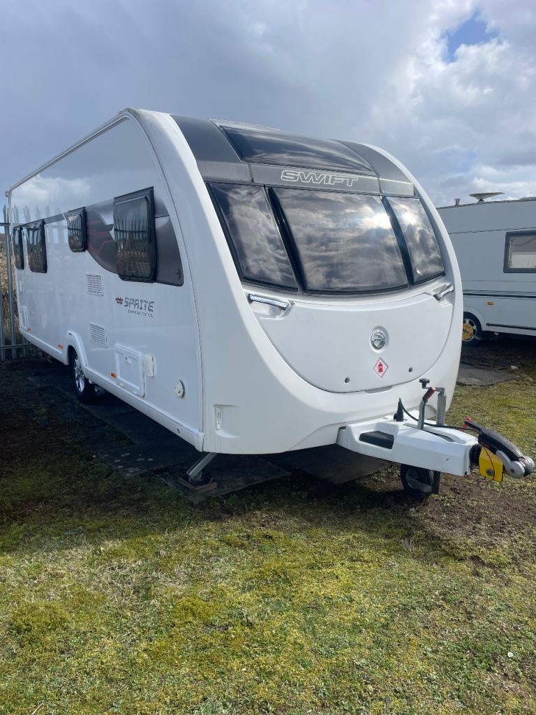 Swift sprite diamond limited edition year 2019 model 4 berth double bed upfront also fixed side double bed at back with toilet at rear of caravan and shower and separate vanity sink full size cooker microwave and fridge hot and cold water fly nets and blinds truma gas and electric central heating fitted puzzle carpets LED lights and USB points all throw large sunroof extras caravan has full size awning and motor mover freshwater and waste water containers leisure battery 240 hook up cable al-ko stabiliser hatch lock on front and safety lock alloy wheels caravan is a new condition full paperwork for more information please phone