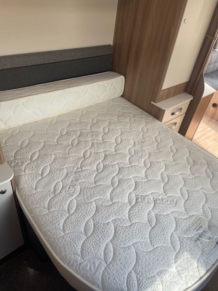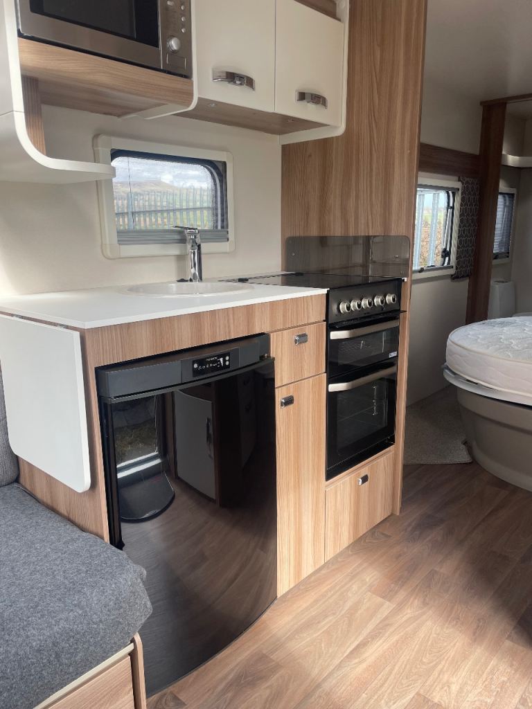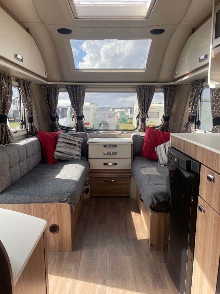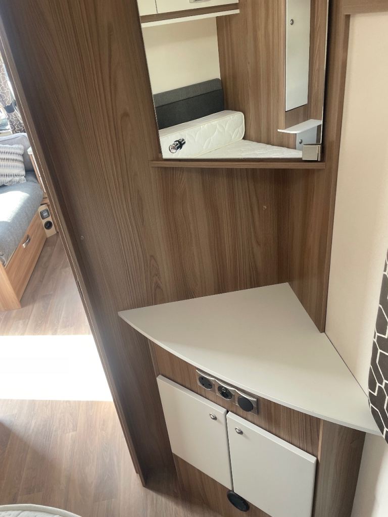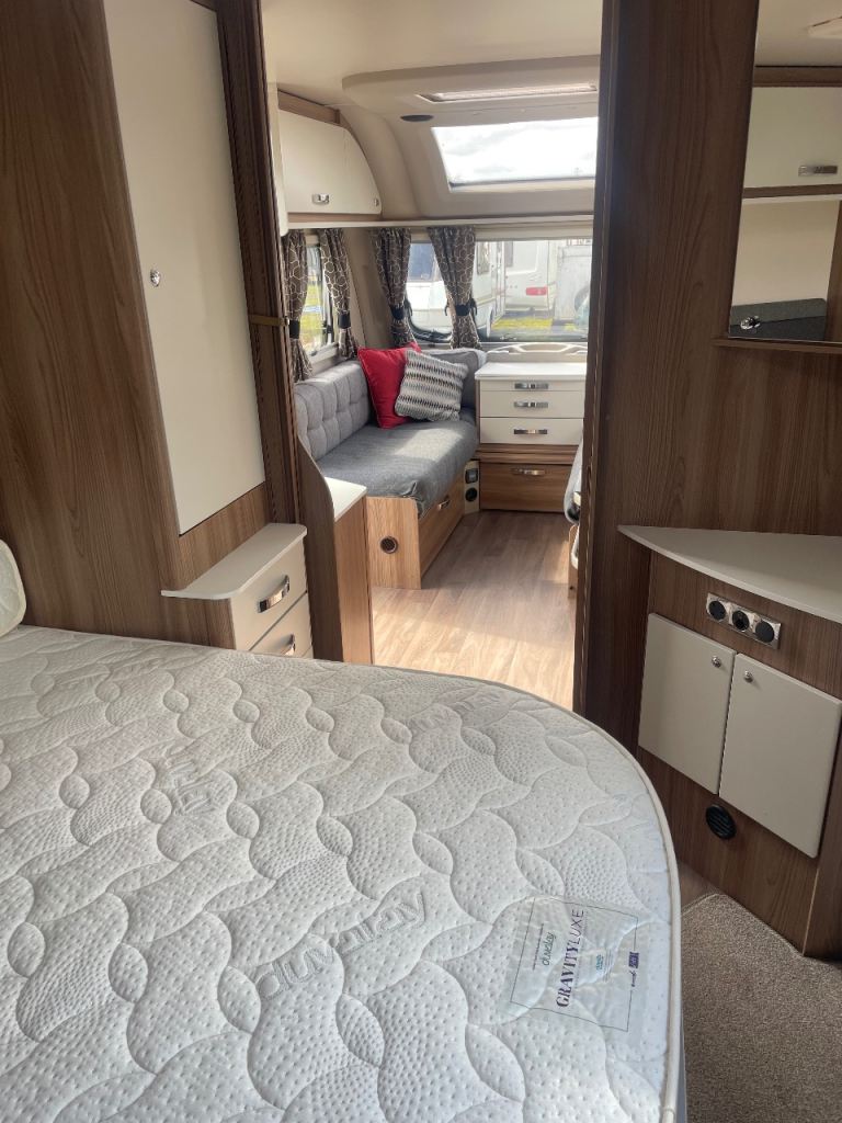 Swift sprite diamond limited edition year 2019 model 4 berth double bed upfront also fixed side double bed at back with toilet at rear of caravan and shower and separate vanity sink full size cooker microwave and fridge hot and cold water fly nets and blinds truma gas and electric central heating fitted puzzle carpets LED lights and USB points all throw large sunroof extras caravan has full size awning and motor mover freshwater and waste water containers leisure battery 240 hook up cable al-ko stabiliser hatch lock on front and safety lock alloy wheels caravan is a new condition full paperwork for more information please phone