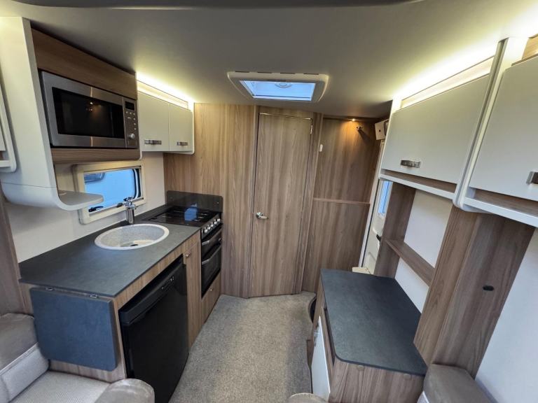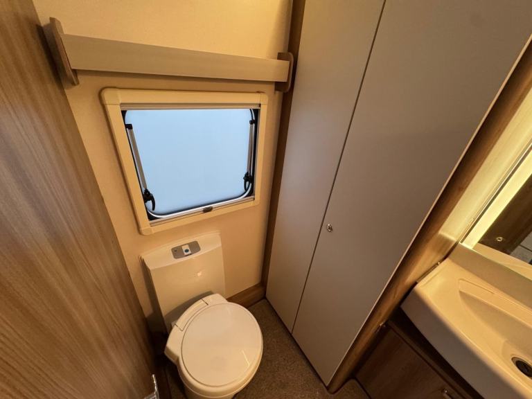 Complete end dressing room including separate shower enclosure, vanity unit, wardrobe and toilet - central nearside dresser - central offside kitchen - 2 x singles / double at the front - an amazing example of this cosy, cute and compact tourer - comparatively lightweight without compromising on specification - in as new condition both inside and out