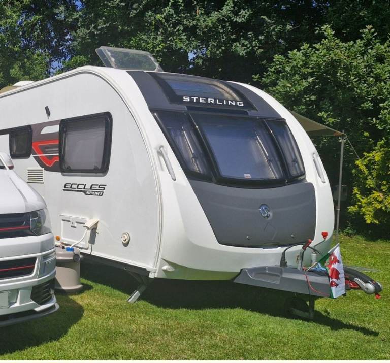 Excellent condition 2 berth Sterling Eccles Sport caravan, 2014 built with the waterproof SMART system, no wooden frame, selling as no longer required, had been regularly serviced, light to tow, motor mover, alko chassis, Tyron bands, Truma blown air heating & water, solar panel, battery, push up status aerial, microwave, gas cooker & grill, fridge with freezer, radio, end bathroom/dressing room with shower, toilet, wardrobe & vanity sink unit. 2 single beds which make a huge double if required. Happy to answer any questions & can get more pictures if needed.