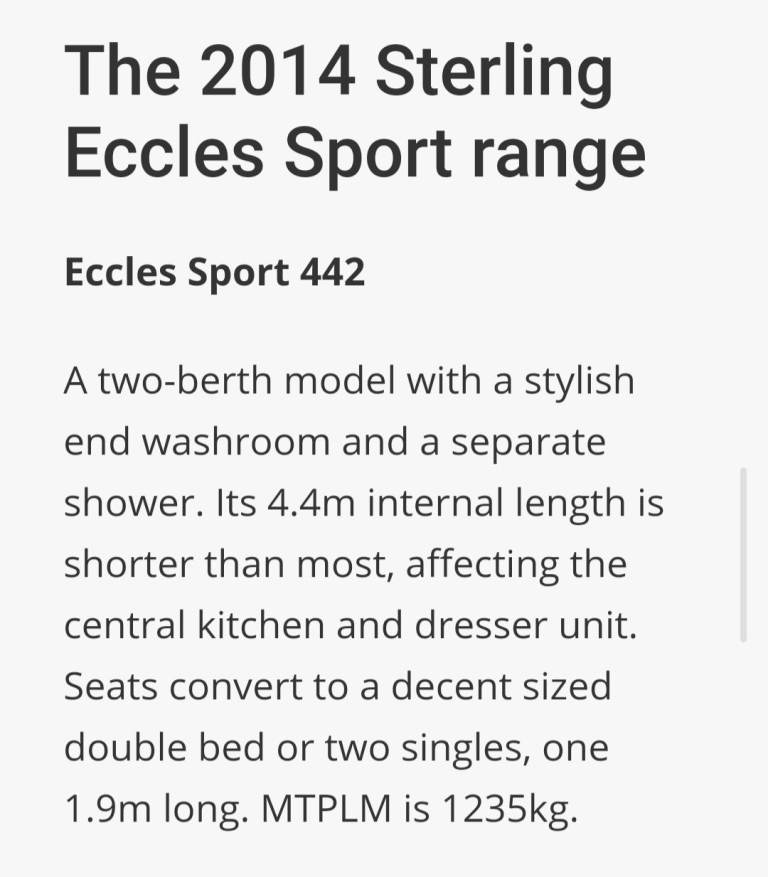 Posting for 12+ yearsSwift Sterling Eccles Sport large 2 berth, end bathroom