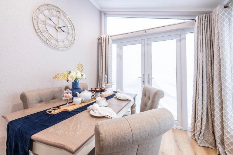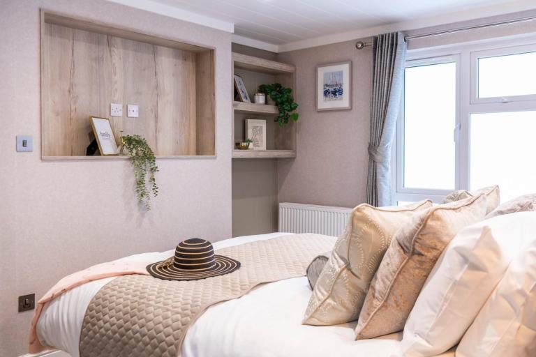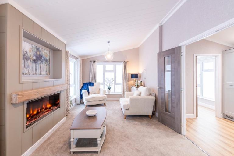 Inside, calming tones, luxurious fabrics and beautiful furnishings can be found throughout, delivering a cosy yet contemporary feel. The lounge has more fire-power than ever in this latest design, and who can forget the bedroom with central bed and feature wall. Behind it sits a dressing area, leading to the walk-in wardrobe and en-suite shower, so this is often the room that ‘closes the deal’ for those who fall in love with it instantly!