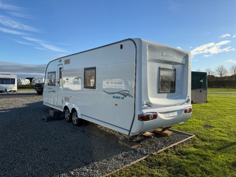 Coachman Laser 640/4 2008 4 berth, fixed bed, in excellent condition with no damp or damage. Coming with extras such as Water Barrels, Water Pump, Electric Lead, Leisure Battery, Carpets and Steps.