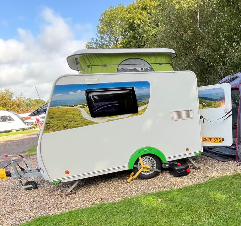 Trigano mini silver 270 pop top micro caravan with motor mover and Trigano awning.