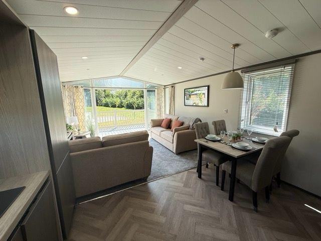 This exceptional two-bedroom, two-bathroom luxury lodge presents a rare opportunity to enjoy sophisticated modern living amidst peaceful countryside surroundings—making it the perfect retreat for couples, families, or anyone looking to downsize in style without compromise.