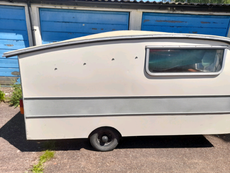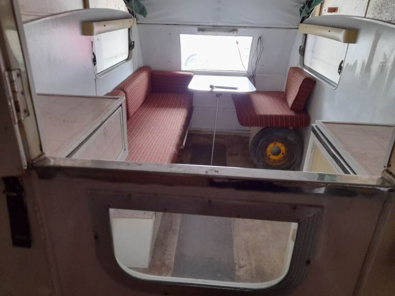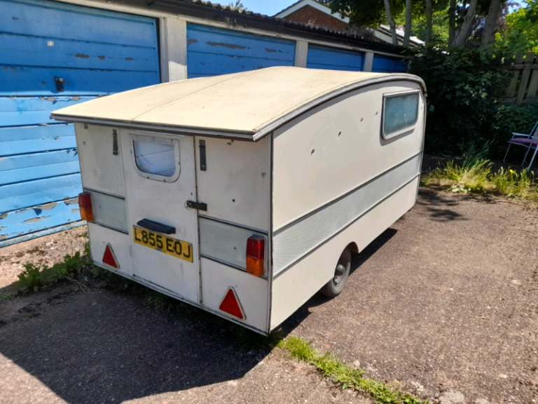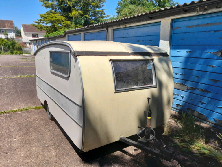 Very rare lightweight Caravan 1950. Cooker, Sink & Table but requires/second bed. With hinged roof up can be used open sided with Tarpaulin sides or with original side panels. Weight may be found under Historic Classic?