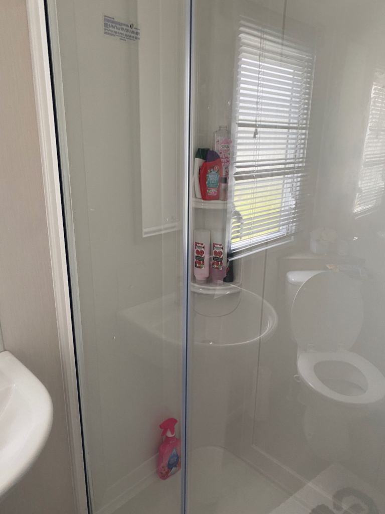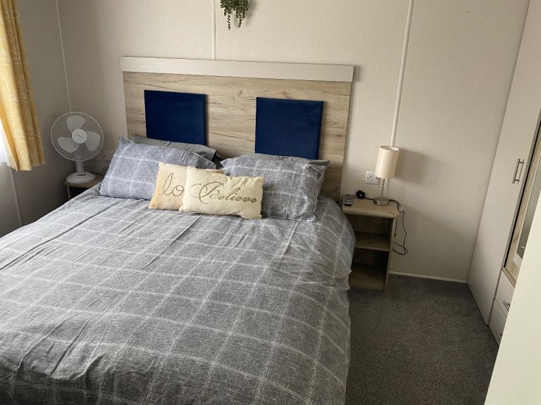 6 Beth, 2 bedroom static van for sale. This van is immaculate with central heating, on suite with king size bed and fitted wardrobe’s in back room. two single beds in second room.